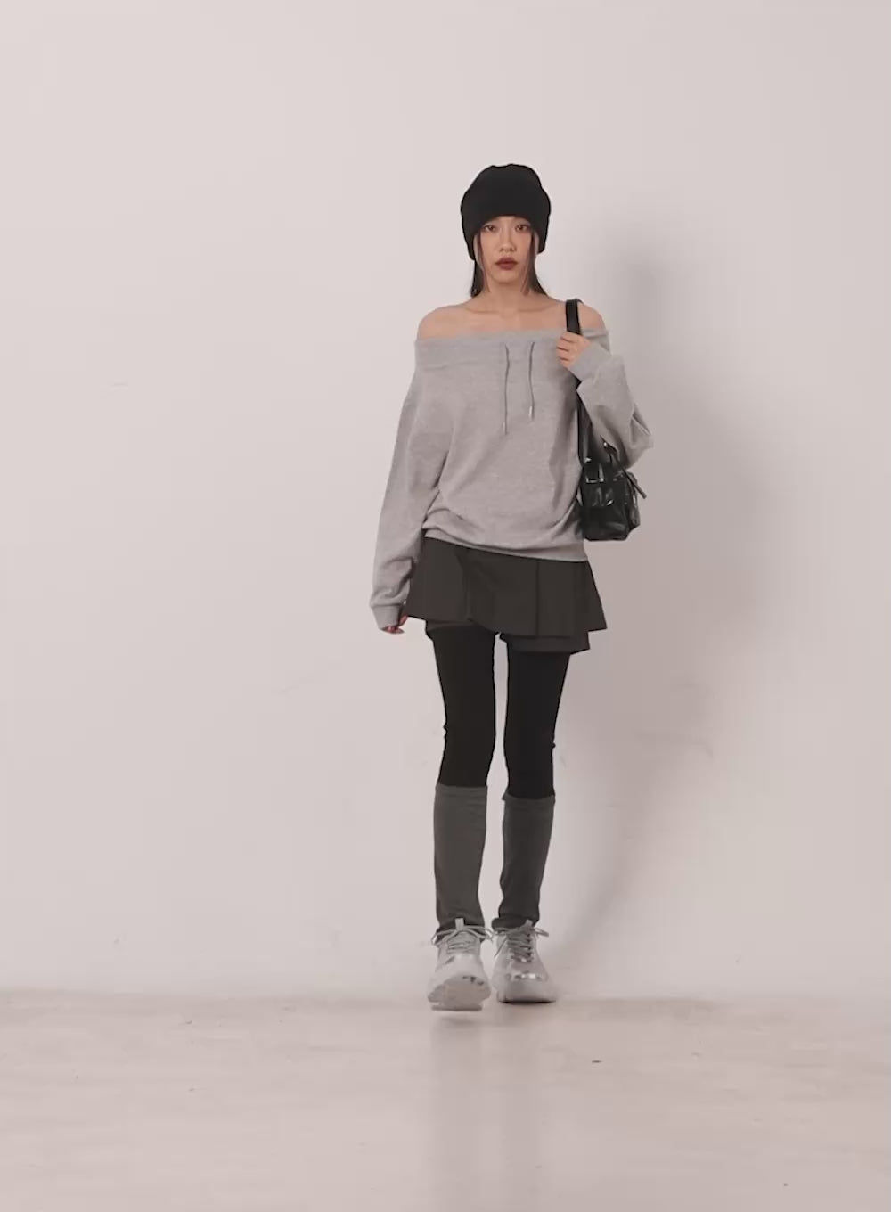 stringed-off-shoulder-sweatshirt-ia504 / Gray
