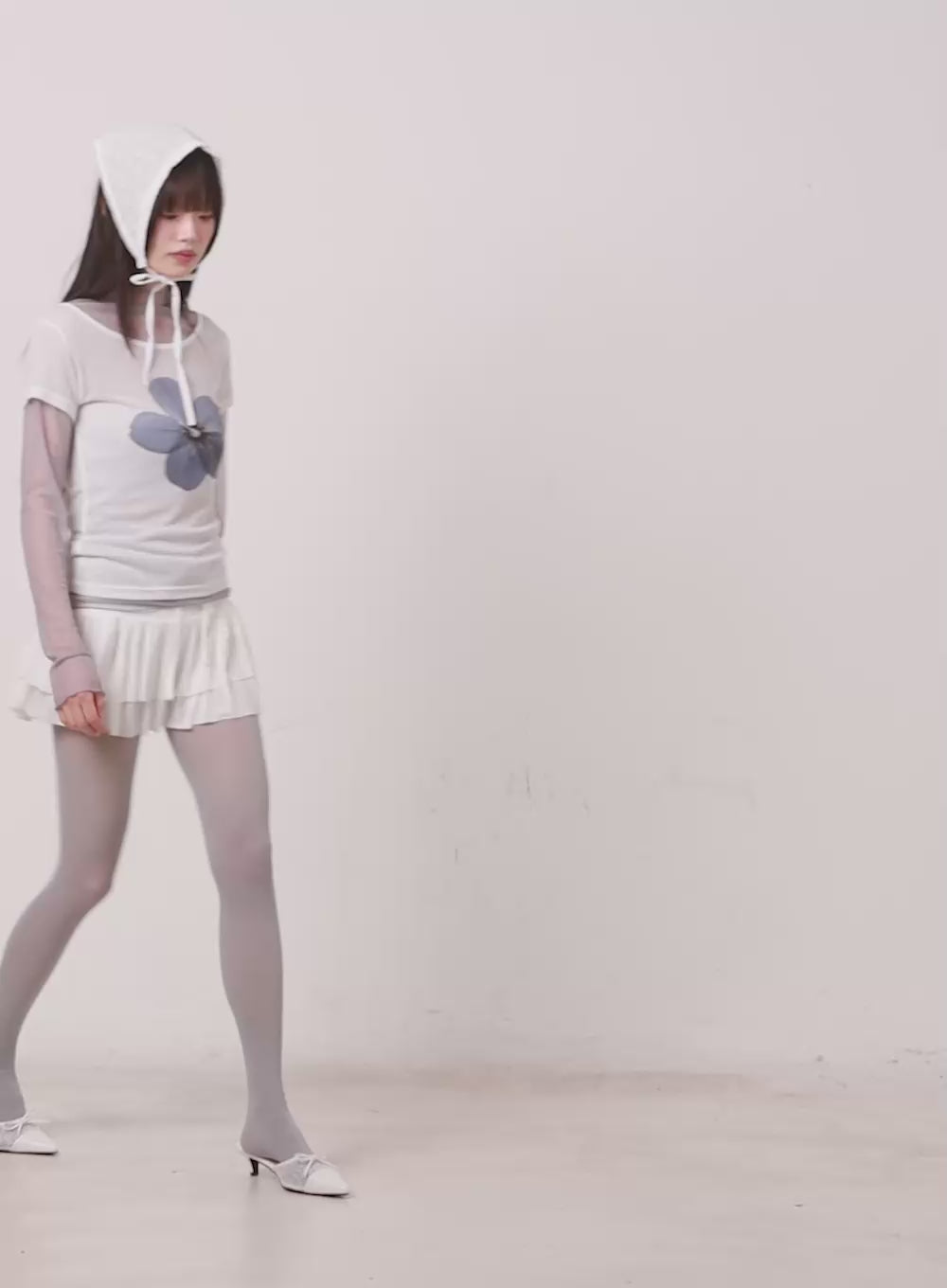 string-ribbon-ruffle-mini-skirt-ca522 / White