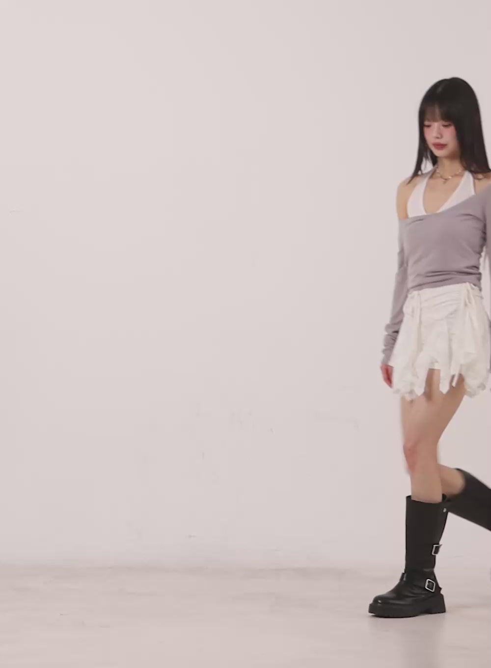 frill-flare-high-waisted-mini-skirt-cm510 / White