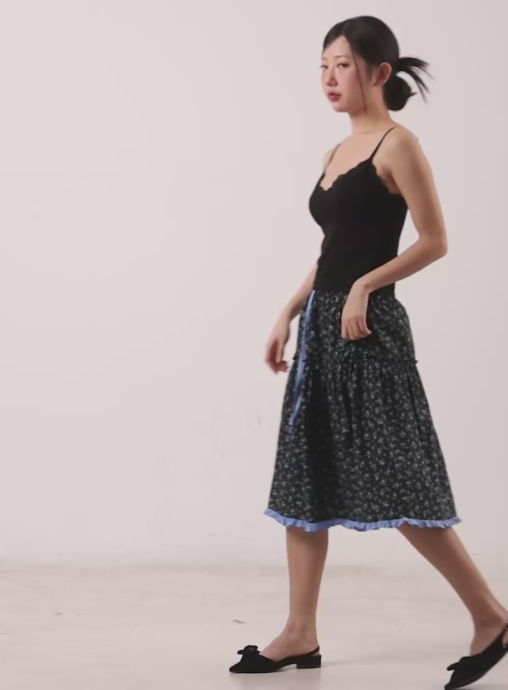 frill-straight-fit-midi-skirt-cf526 / Dark gray