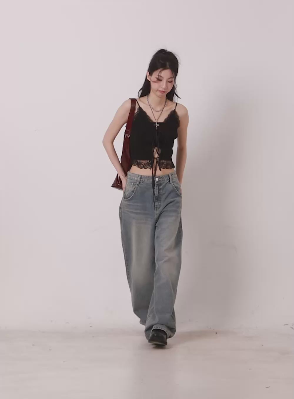 Half-ready, fully hot. A tube top, lace cami layered on top, and baggy jeans to balance the pretty with the laid-back. It’s giving “I woke up like this,” but cooler.