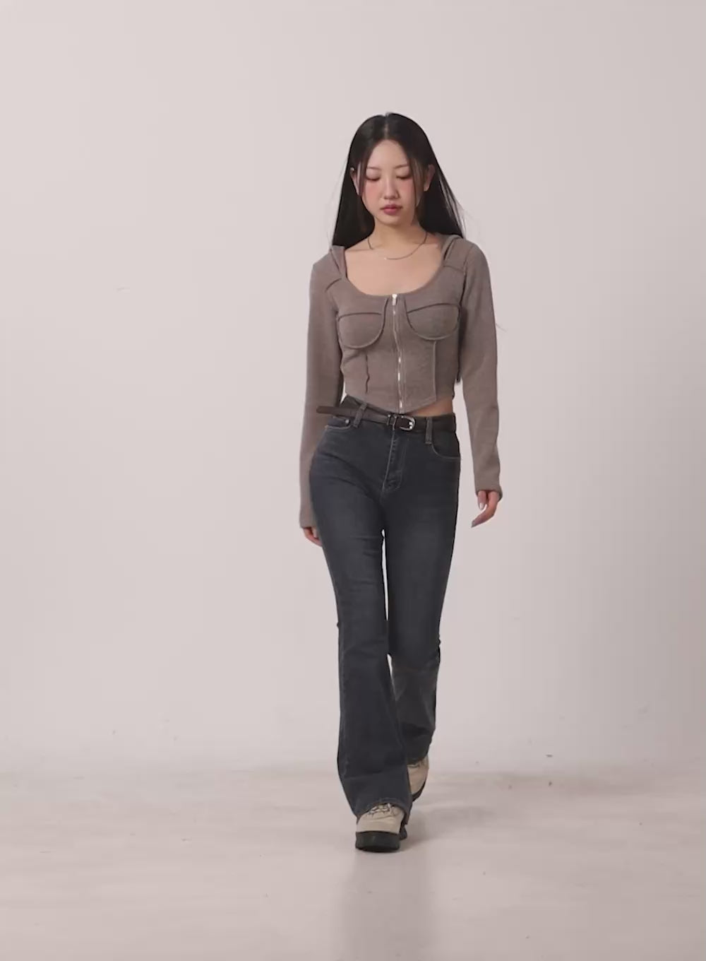 Off-Shoulder Asymmetric Long-Sleeve Knit Top CF525 / Lucienne Contour Flared Jeans CF524