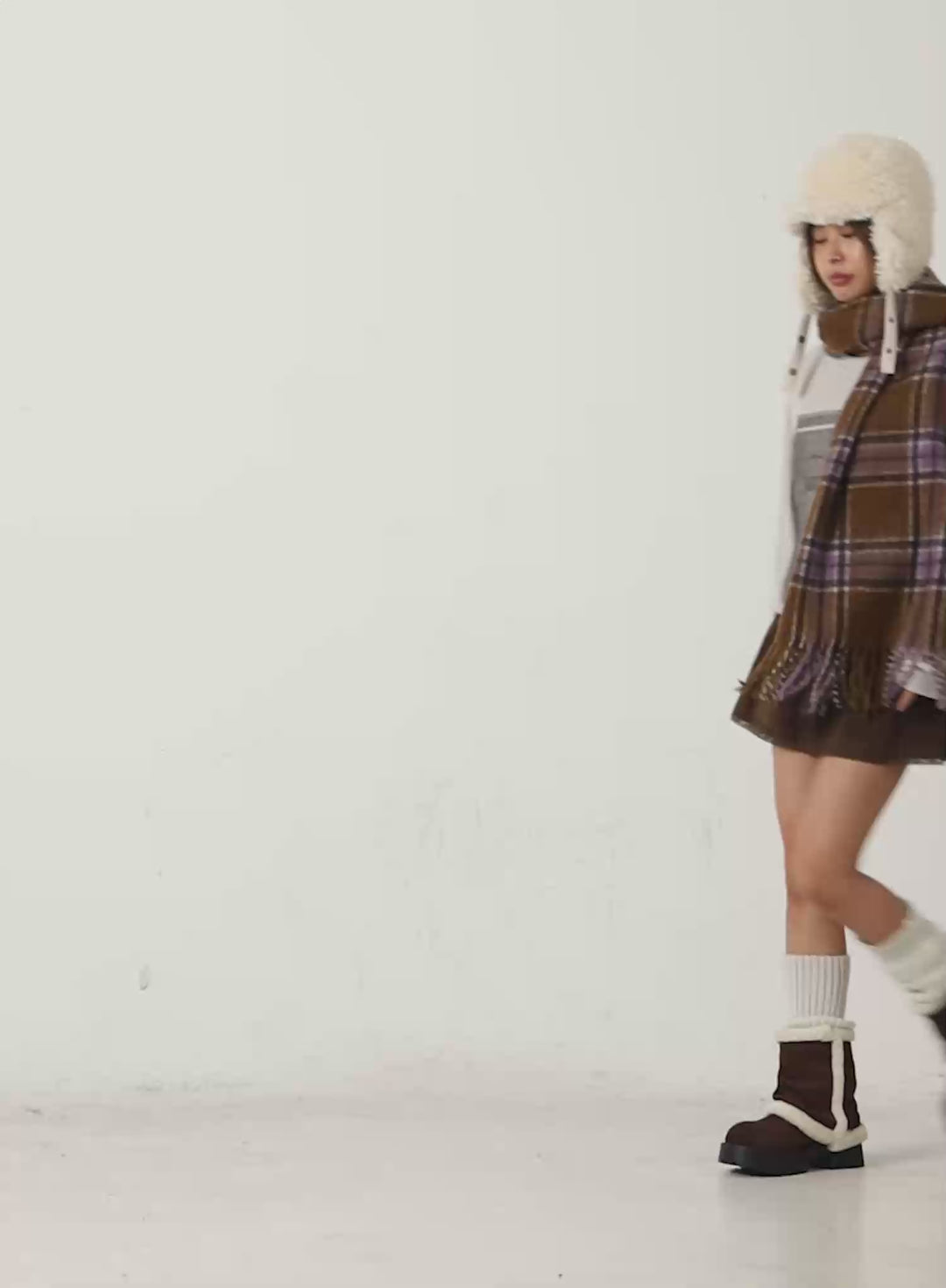 ruffled-plaid-mini-skirt-cn527 / Brown