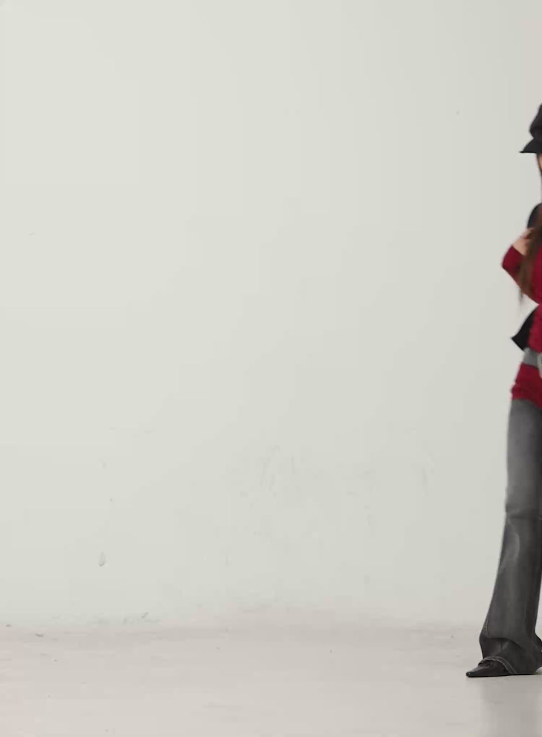 you’re lounging on the comfiest pink sofa, chatting with your bestie on the phone, and planning the most healing Galentine’s Day bash. This outfit—textured red knit with a bow accent scarf, washed wide-leg jeans, matched chic pointed-toe heels—screams effortless cool. Whether you’re deciding on decorations or being girl's girl, you’ll feel comfy and confident while getting party-ready. Pro tip: add some bold earrings and you’re totally Insta-worthy.