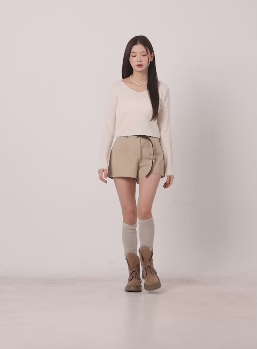 side-zip-up-pleated-mini-skirt-cs420 / Light beige