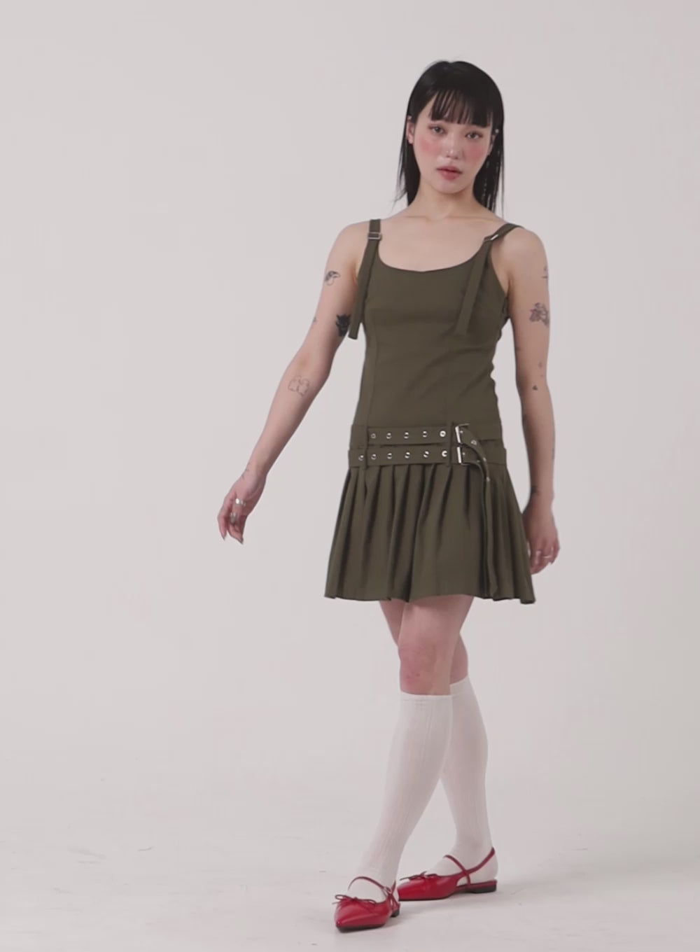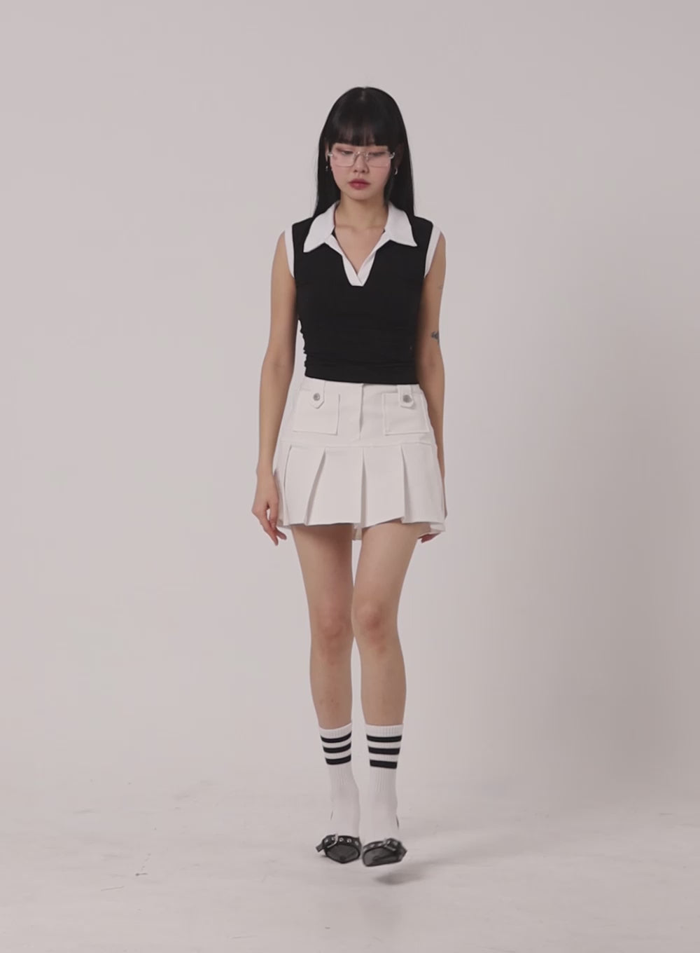 unbalanced-denim-pleated-mini-skirt-ij430 / Black