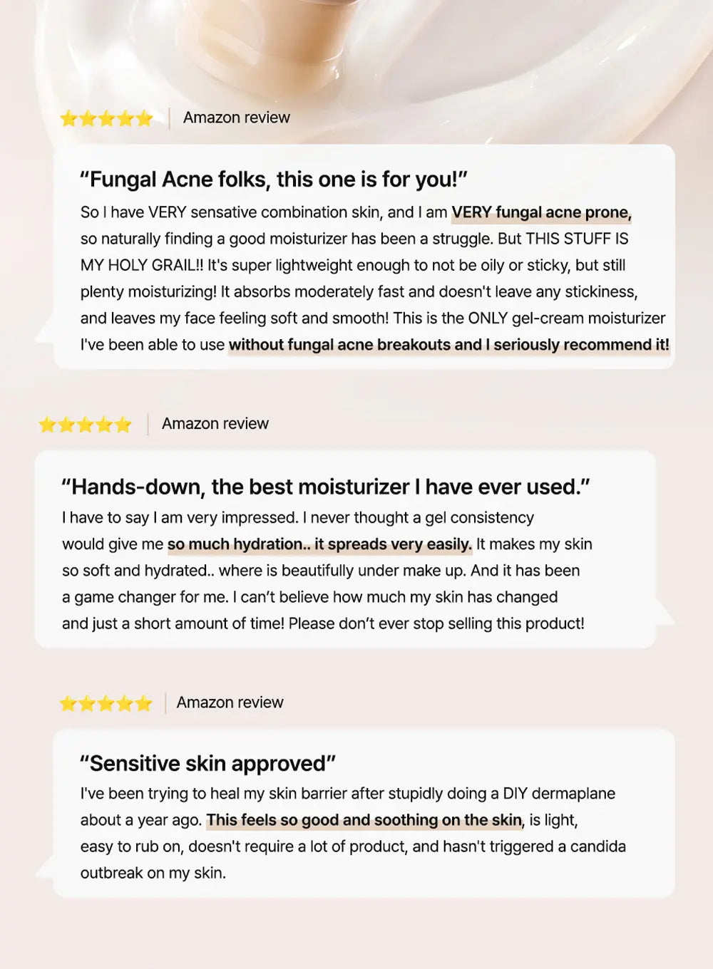 - This lightweight gel cream melts softly into the skin, safe for use on sensitive skin types.