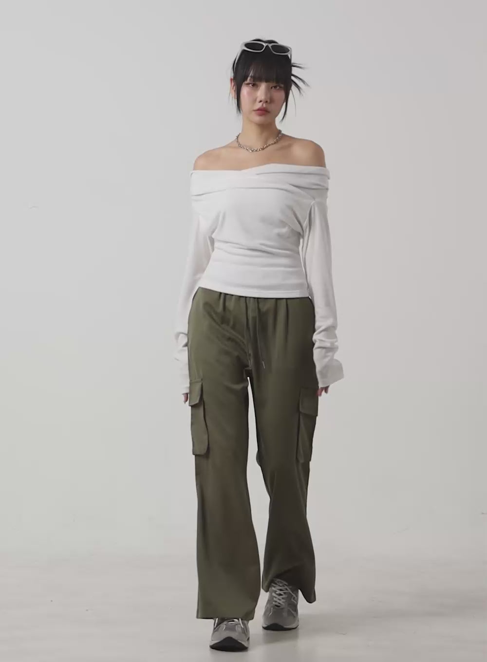 Banded Pocket Boot-Cut Cargo Pants OS410