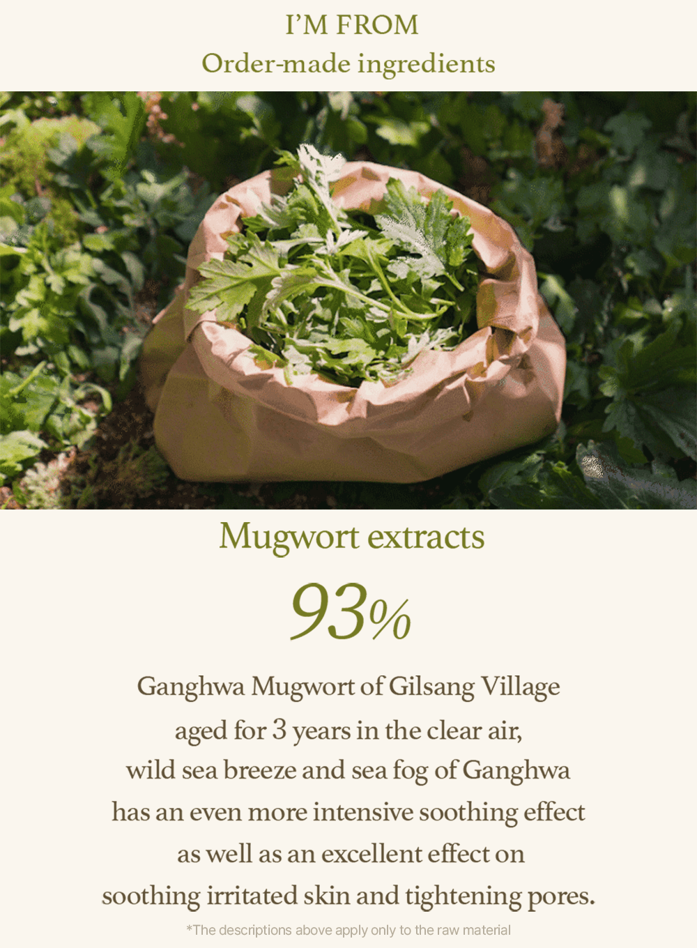 - Contains 93% Mugwort extract, providing deep hydration and soothing benefits to the skin.