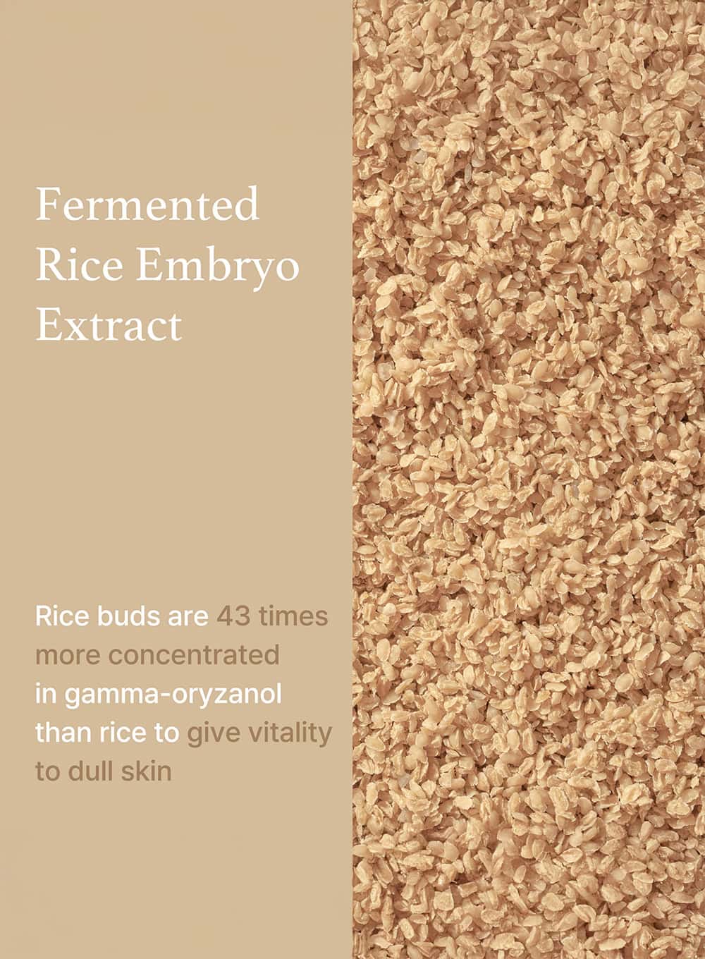 - Contains 73% Rice Germ Ferment Extract, which deeply hydrates the skin and enhances its natural glow.