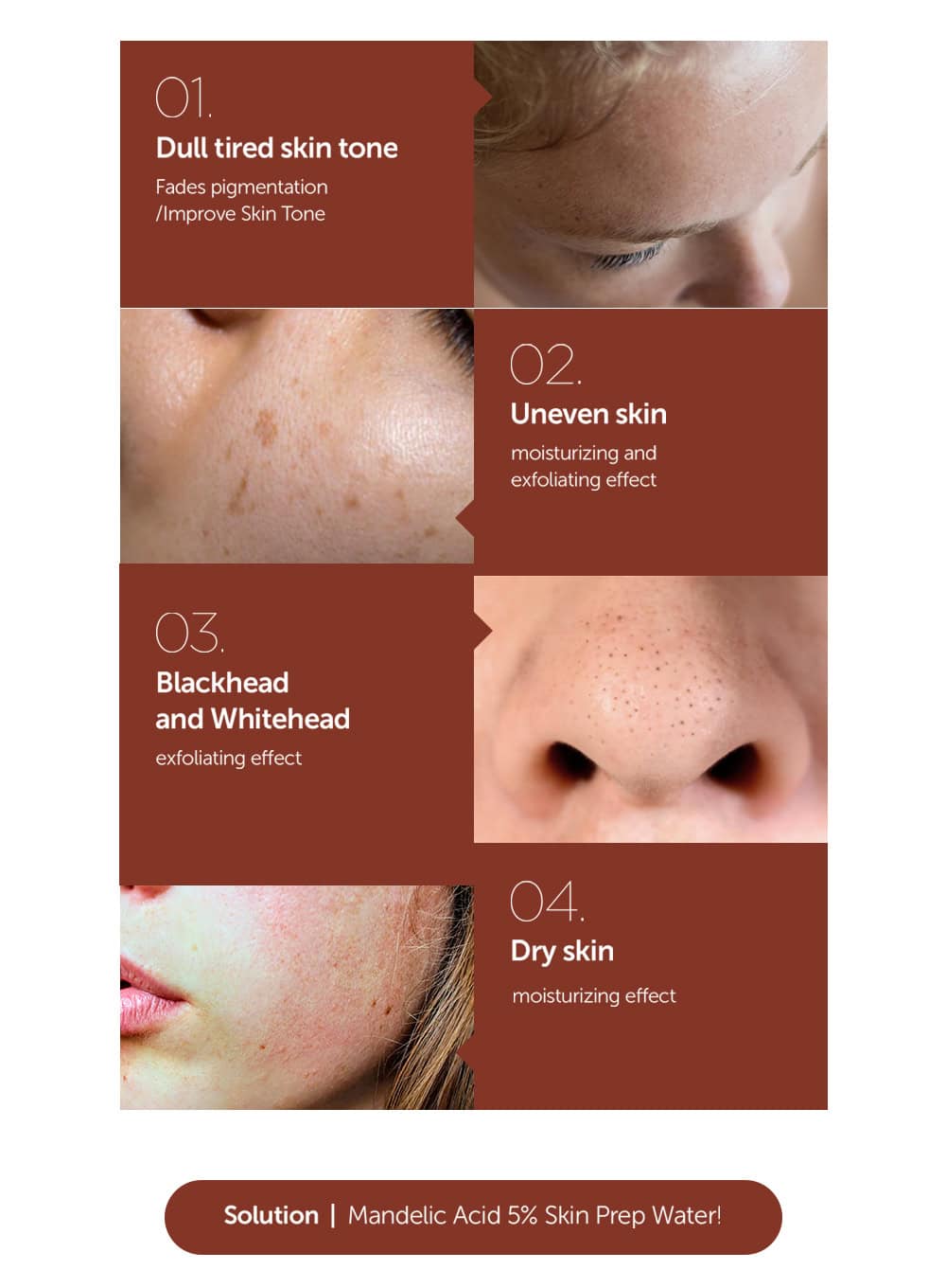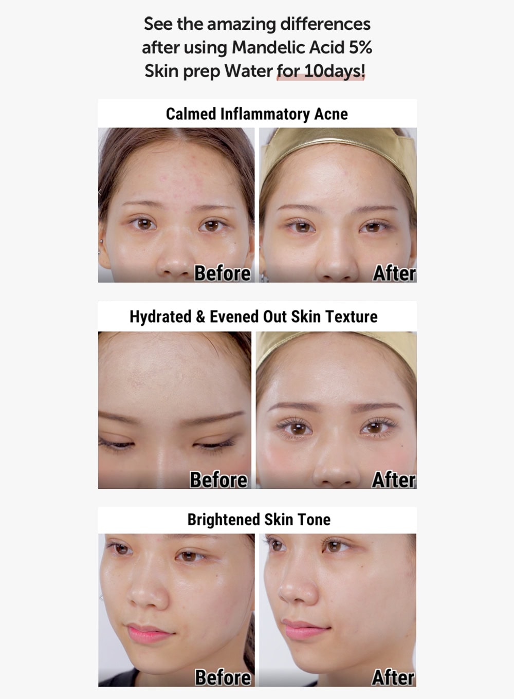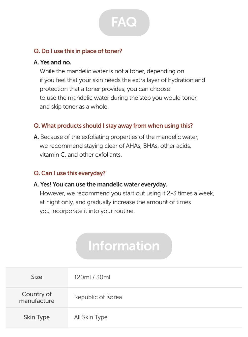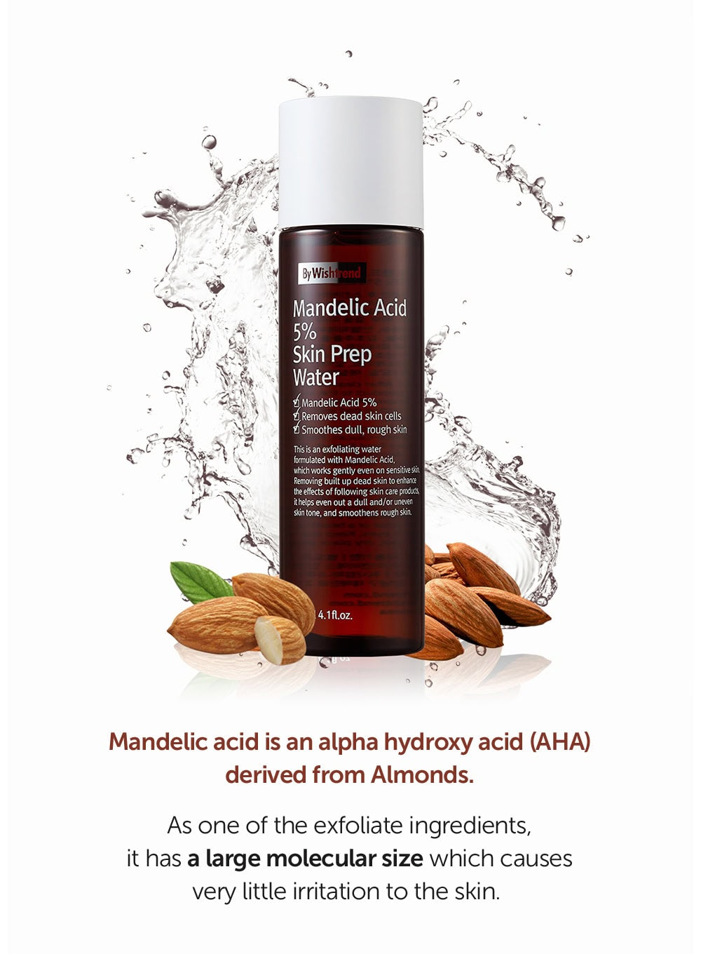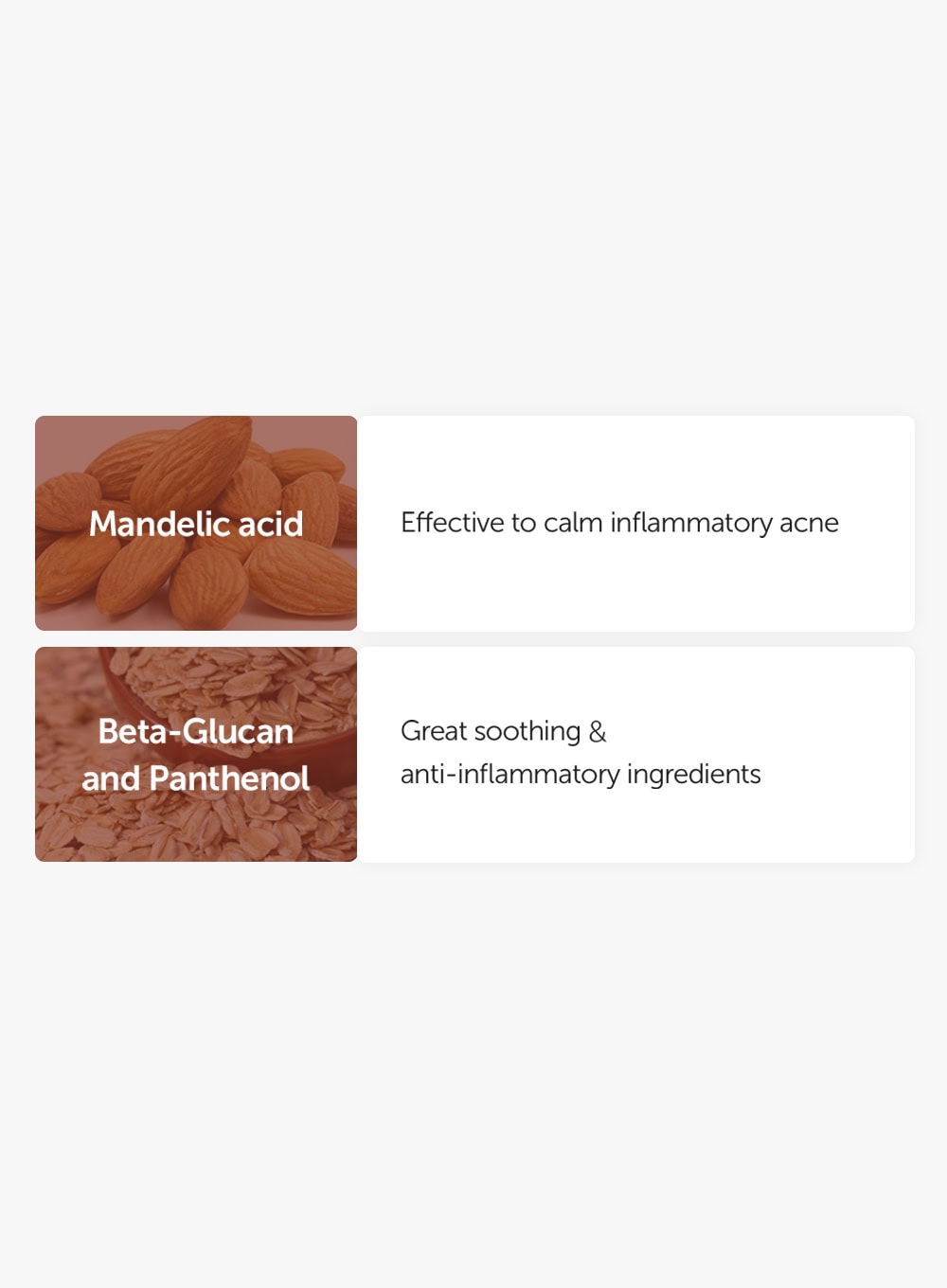 - Contains 5% Mandelic Acid to gently exfoliate, improve skin texture, and help with acne-prone skin and pores.
