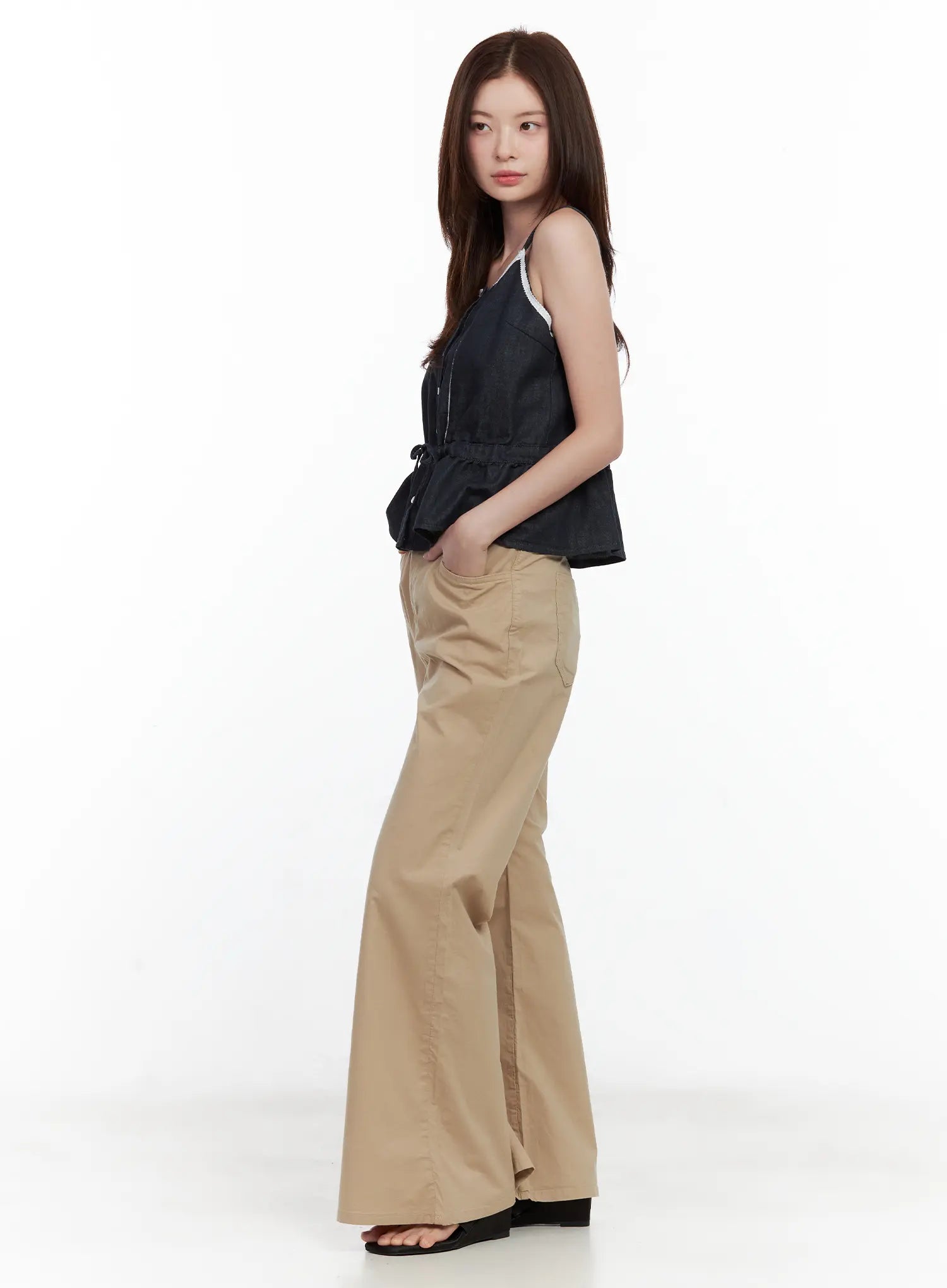 Beige Loose Flared Pants CL502