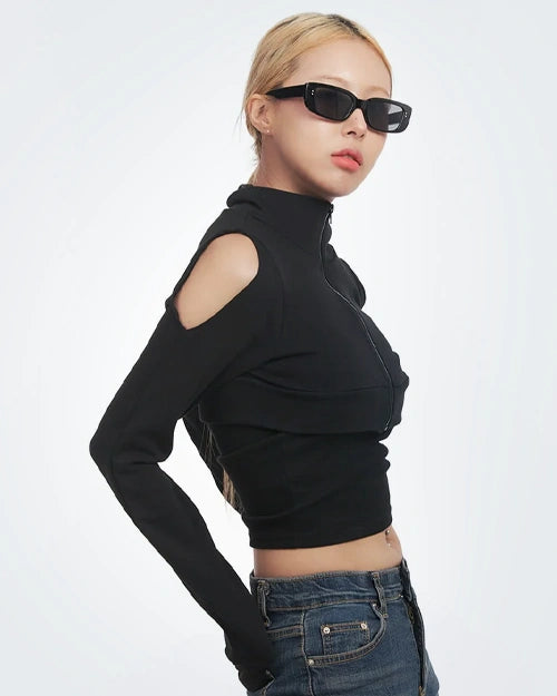 NEWCut-Out Cropped Zip-Up Hoodie CD515