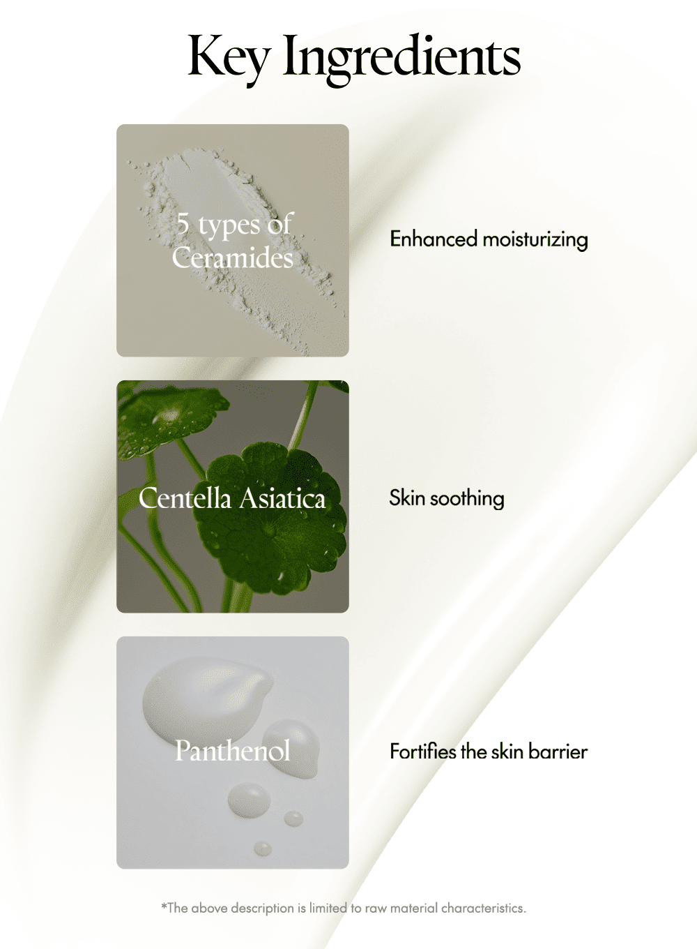 Water, Propanediol, Dibutyl Adipate, Dicaprylyl Carbonate, Diethylamino Hydroxybenzoyl Hexyl Benzoate, Ethylhexyl Triazone, Bis-Ethylhexyloxyphenol Methoxyphenyl Triazine, Amylopectin, Butylene Glycol, Methylene Bis-Benzotriazolyl Tetramethylbutylphenol, Glycerin, Behenyl Alcohol, Poly C10-30 Alkyl Acrylate, Polyglyceryl-3 Methylglucose Distearate, Sodium Acrylates Crosspolymer-2, Carbomer, Tromethamine, Decyl Glucoside, Acrylates/C10-30 Alkyl Acrylate Crosspolymer, (-)-alpha-bisabolol, Panthenol, Caprylhydroxamic Acid, Centella Asiatica Extract, Tocopherol, Ceramide NP, Dipropylene Glycol, Cholesterol, Propylene Glycol, Xanthan Gum, Glyceryl Stearate, Ceramide AS, Ceramide AP, Ceramide NS, Hydrogenated Lecithin, Ceramide EOP