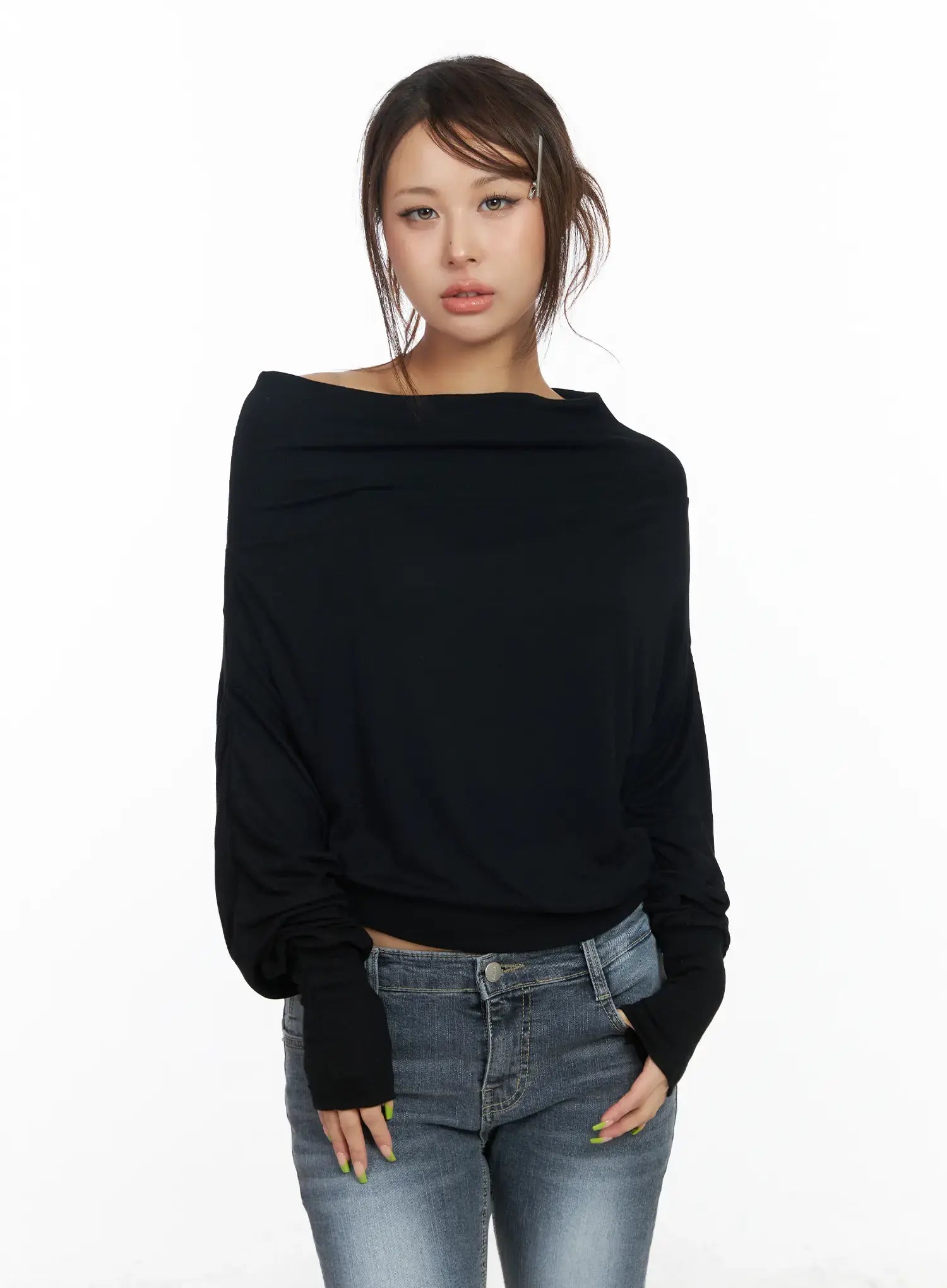 Asymmetric One-Shoulder Long Sleeve Top CF513