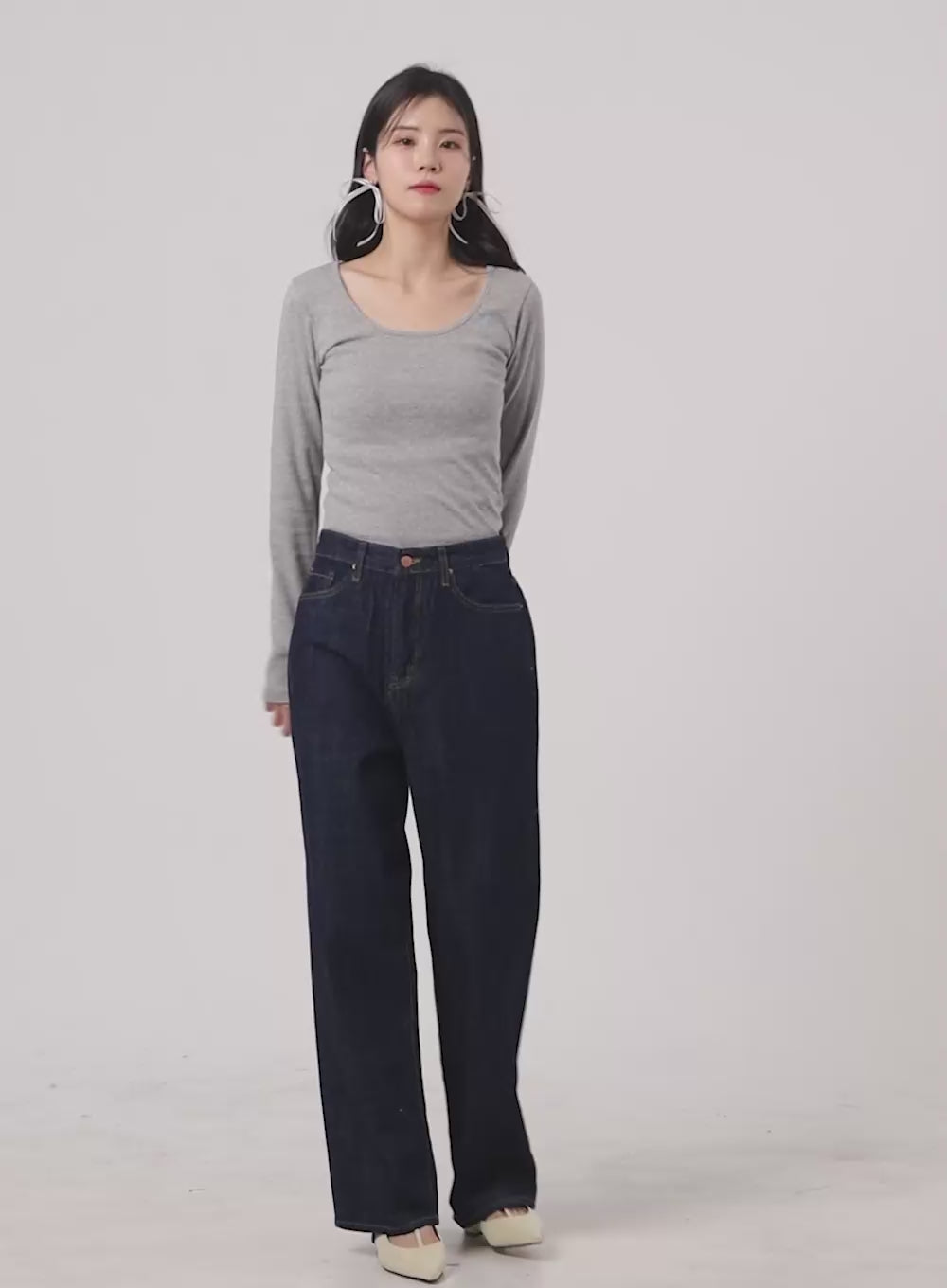 Basic Cotton U Neck Long Sleeve Tee OA405