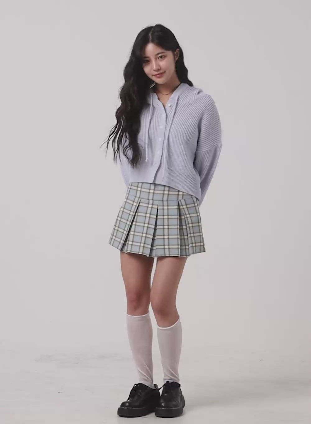 Model is wearing size S/M and the color Light blue.