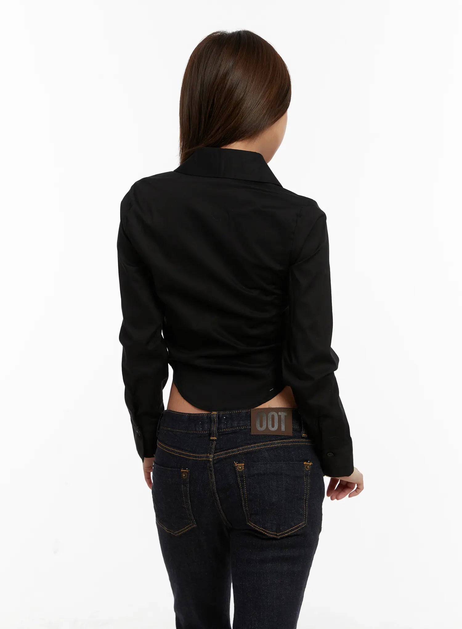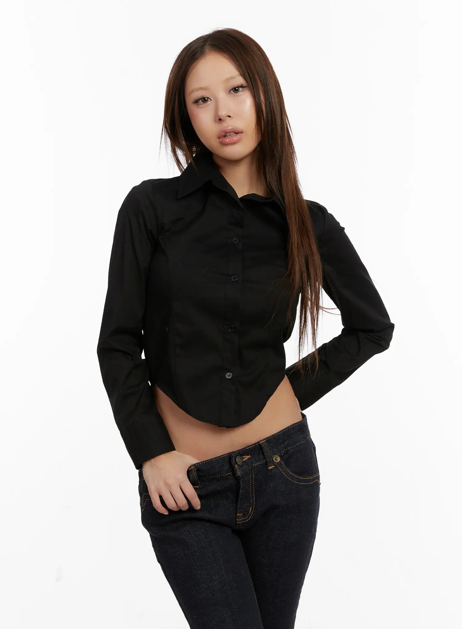 Cropped Slim Fit Button-Up Shirt CD515