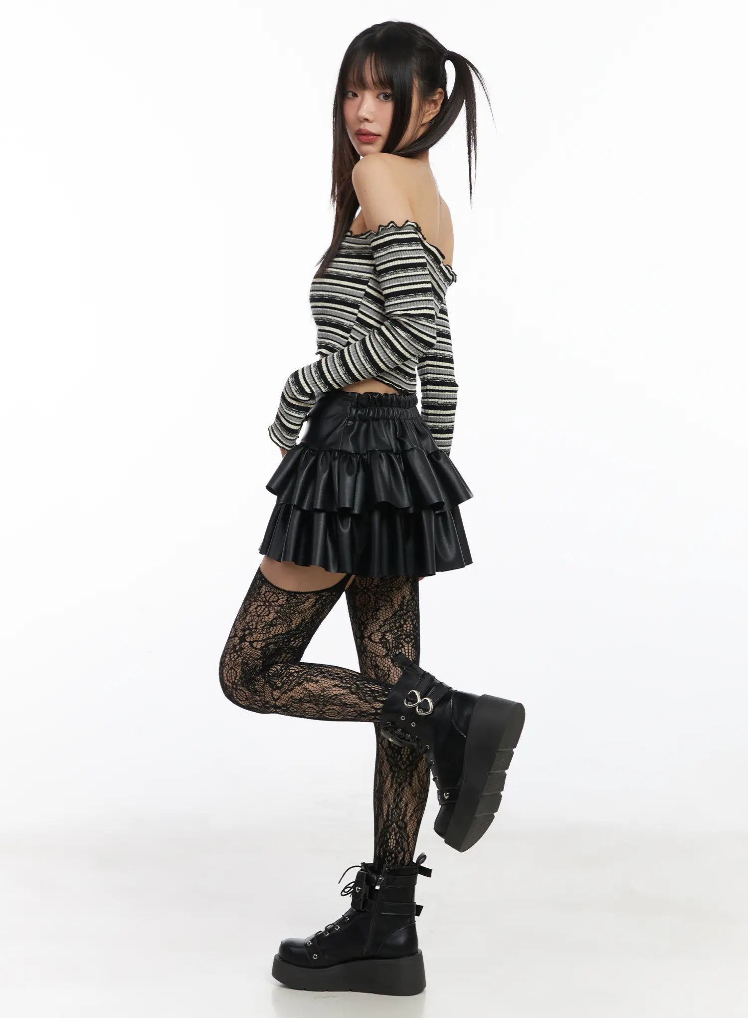 Cropped Striped Off-Shoulder Long Sleeve Top CD522