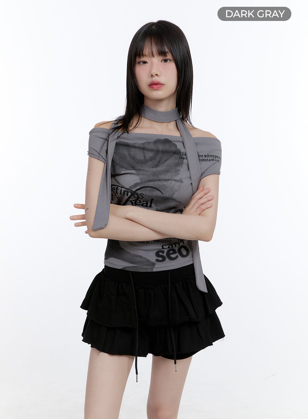 Graphic Bliss Off-Shoulder Crop Top CG412