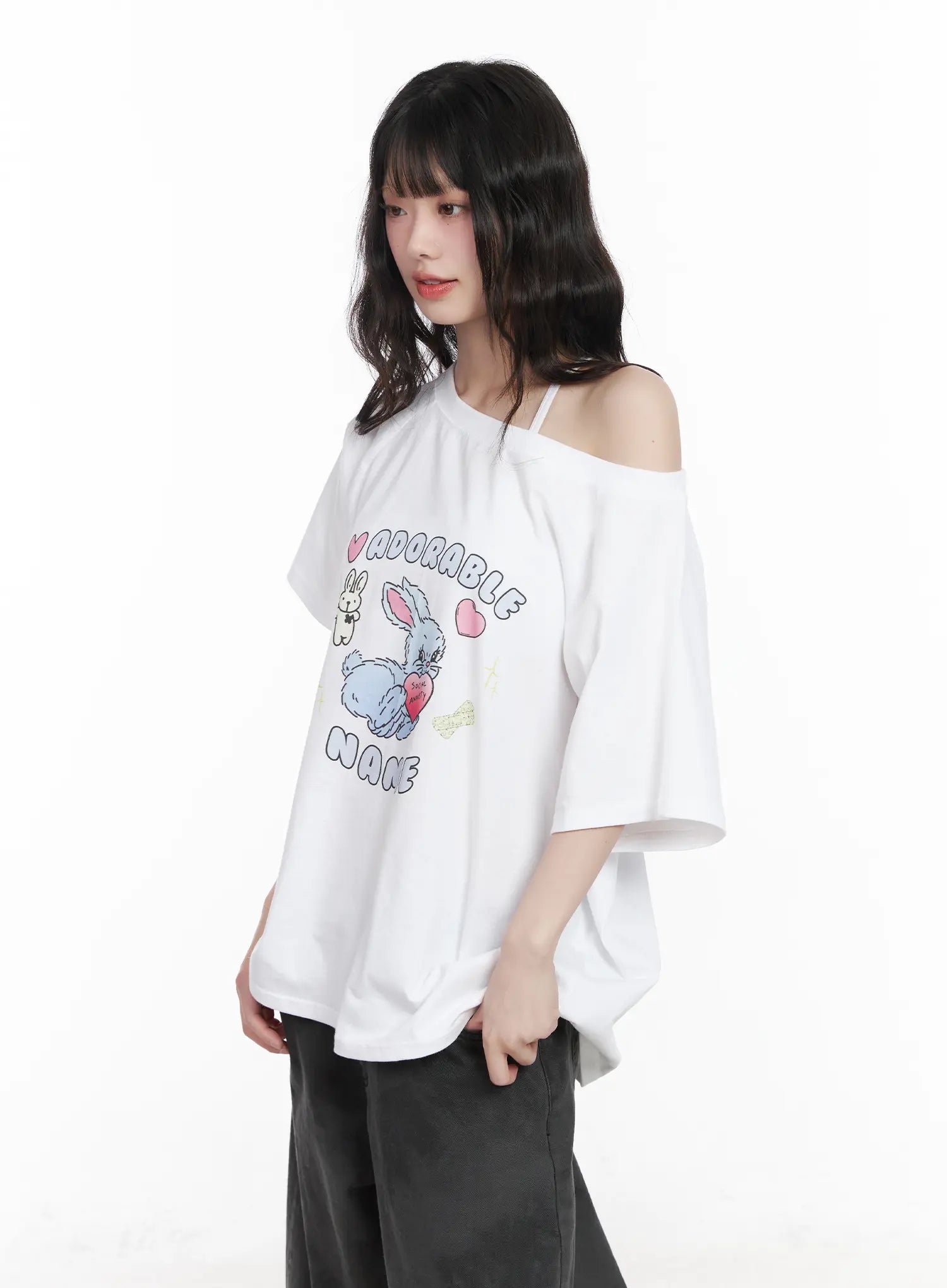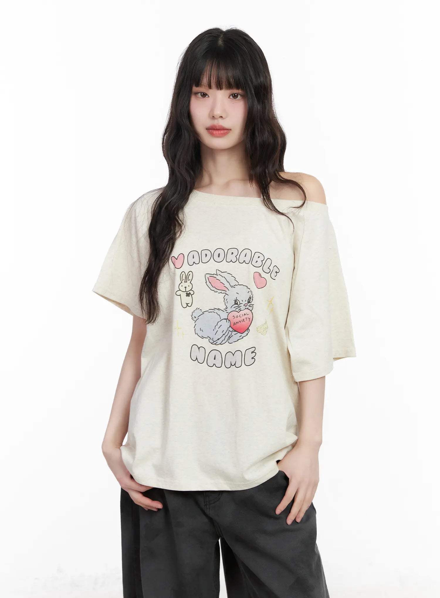 Graphic Bunny Off-Shoulder Top CM526