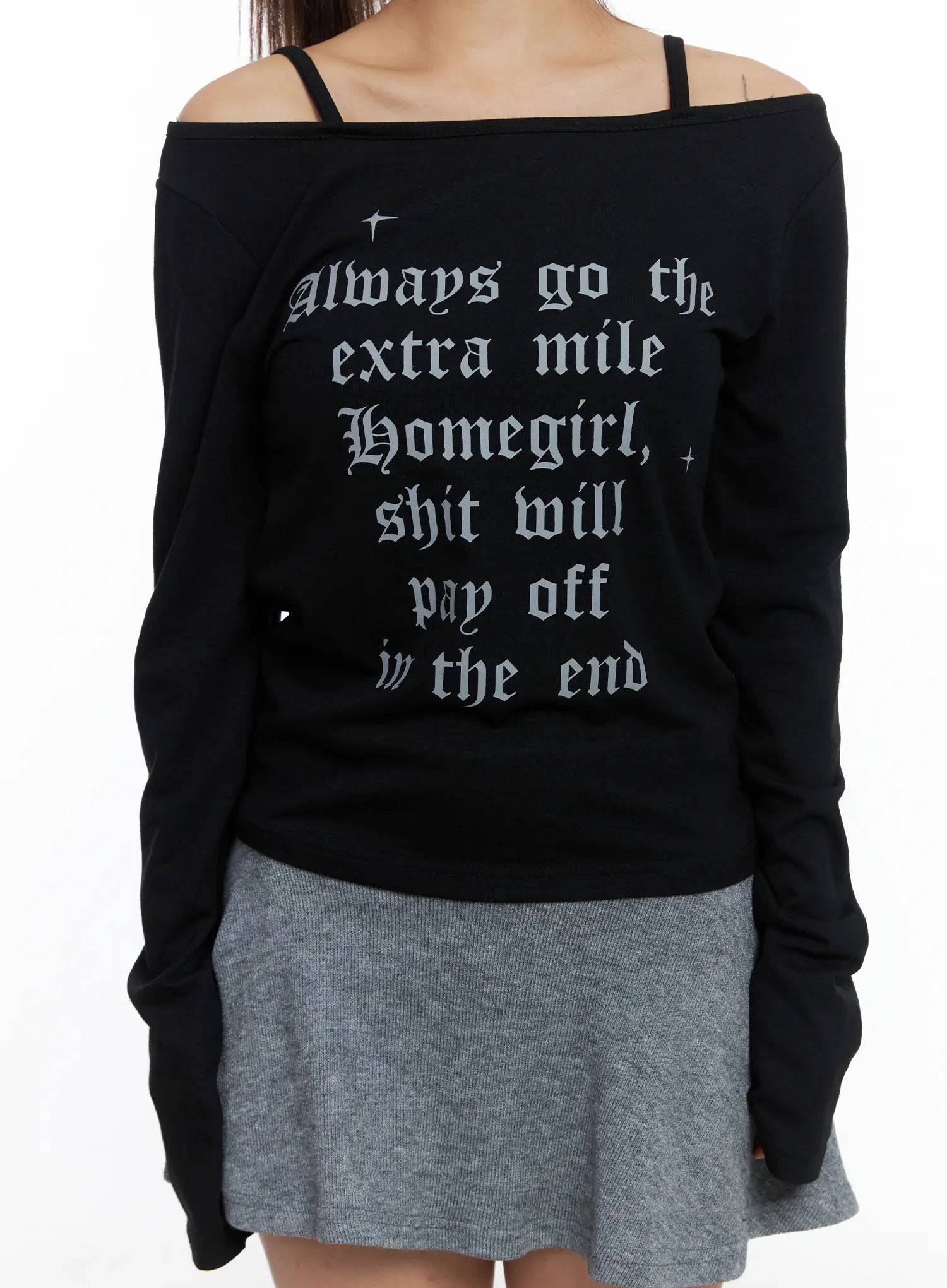 Graphic Off-Shoulder Long Sleeve Top CS505