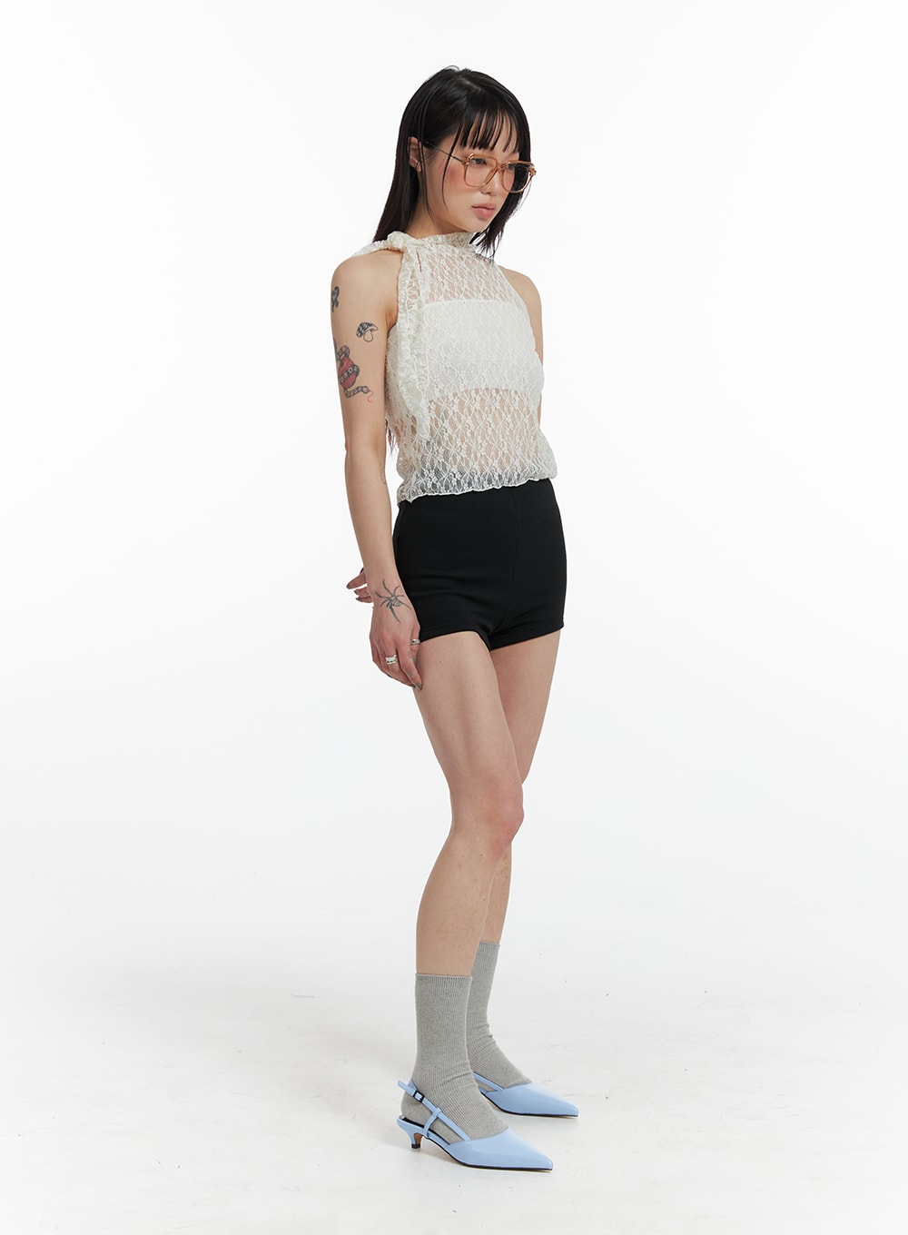 Model is wearing the color Light blue.