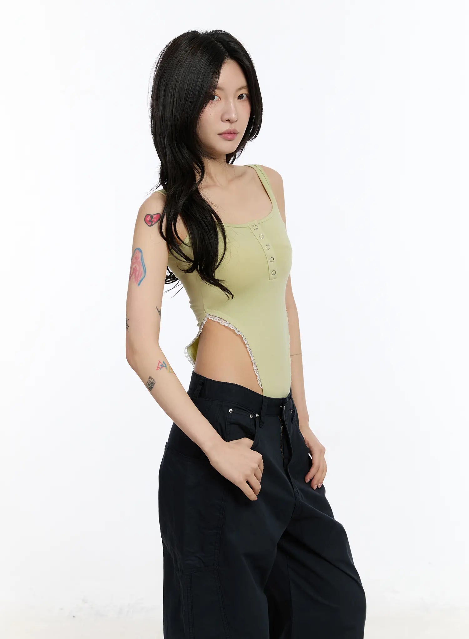 Lace Trim Henley Bodysuit CA507
