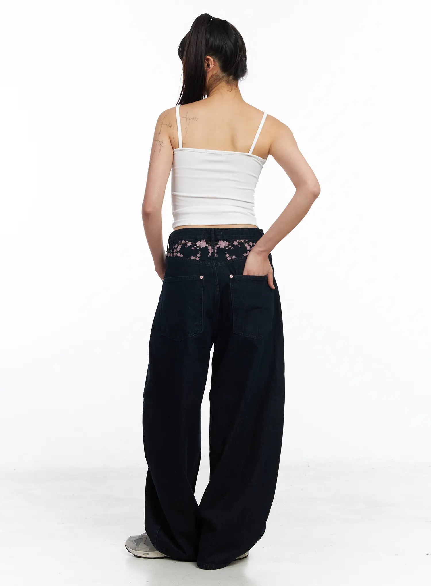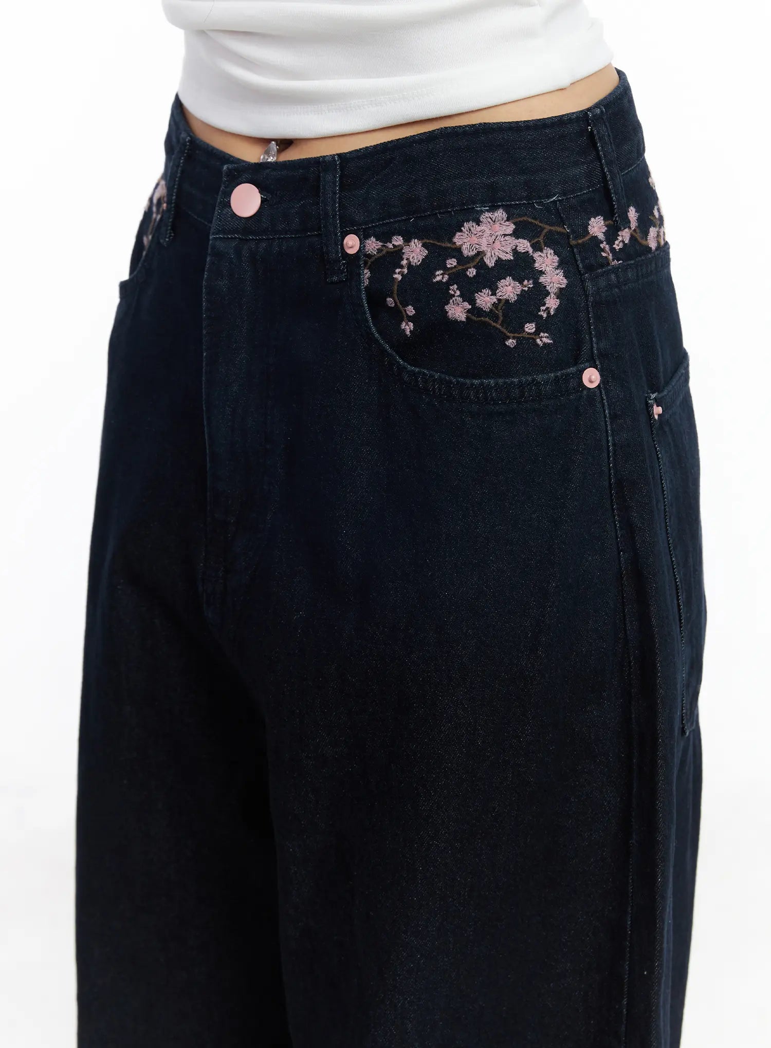 Mahalia Cherry Blosson Embroidered Wide Leg Jeans CF504