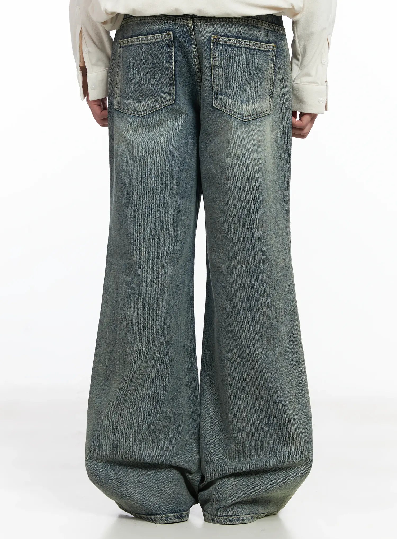 Men's Blue Washed Semi-Flared Jeans IJ521