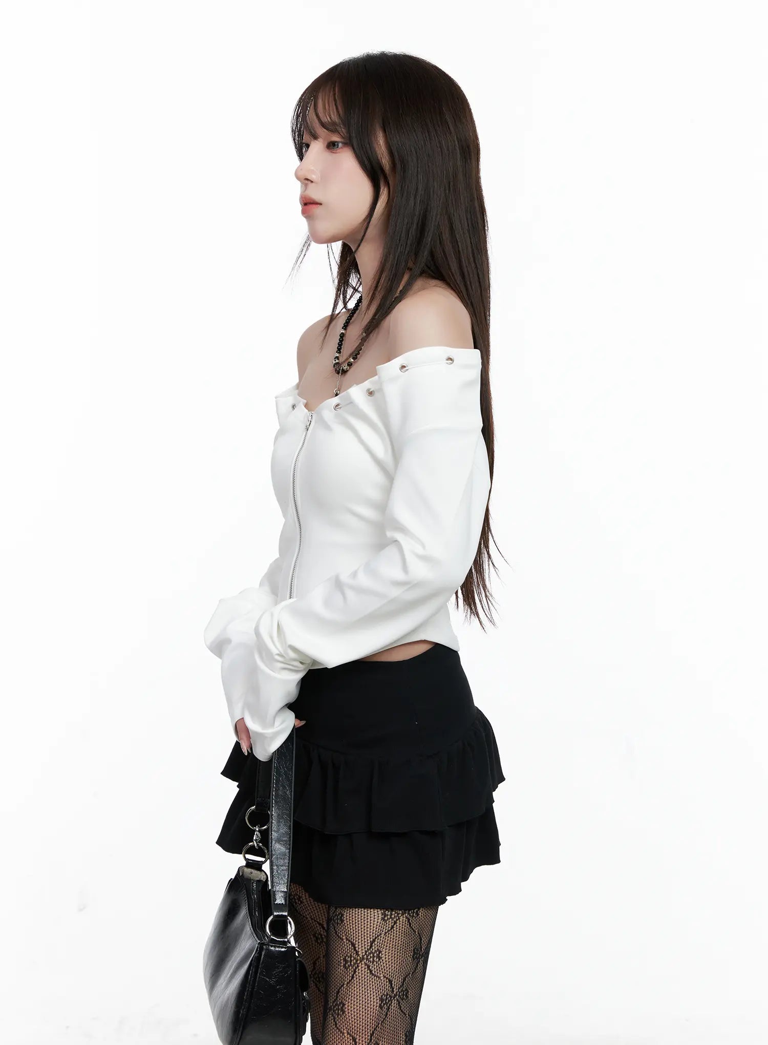 Off-Shoulder Zip-Up Crop Top CO520