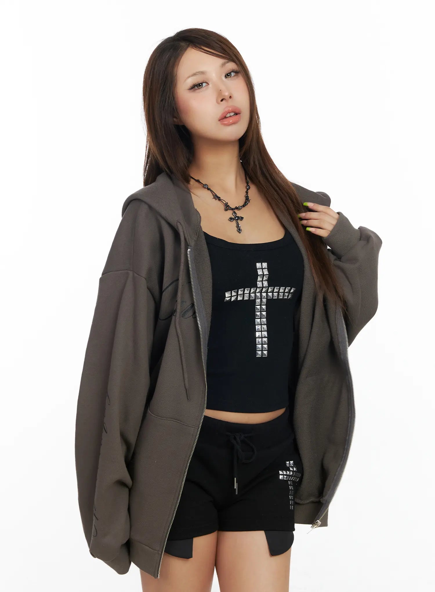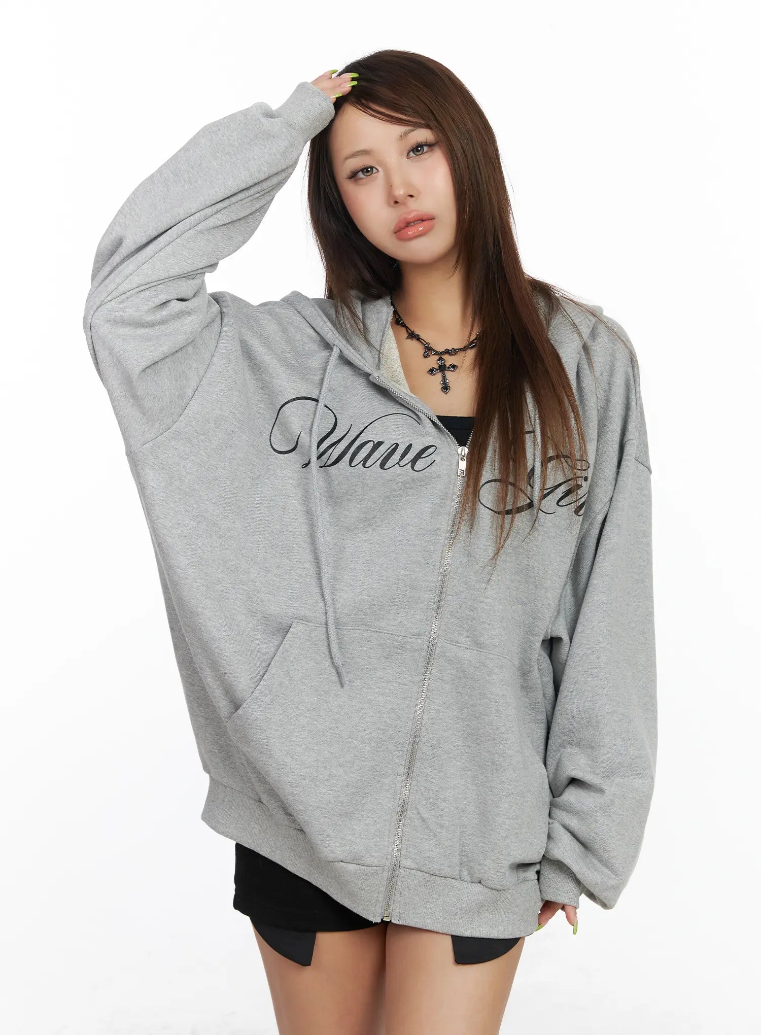 Oversized Hoodie with Graphic Text CF513