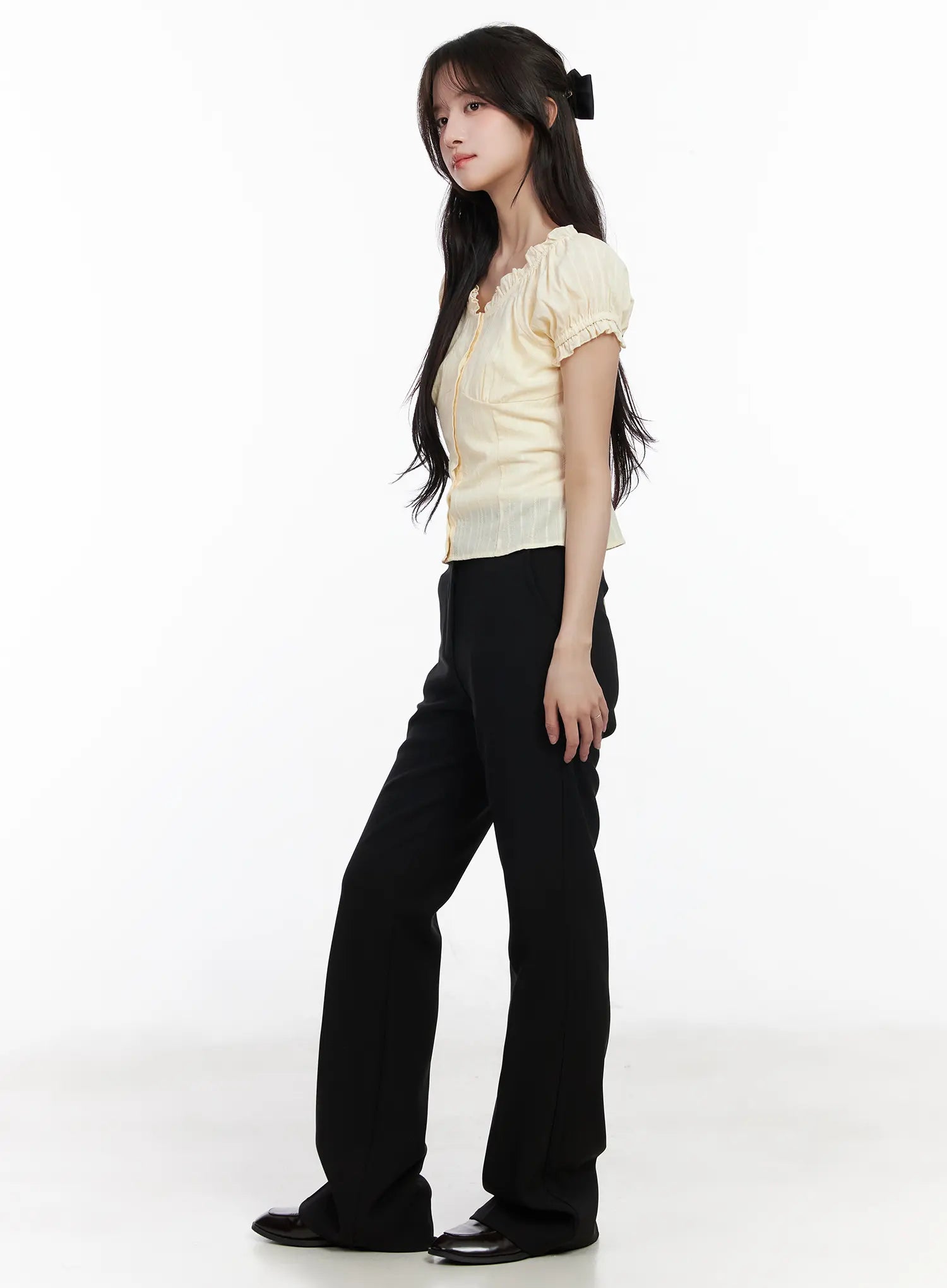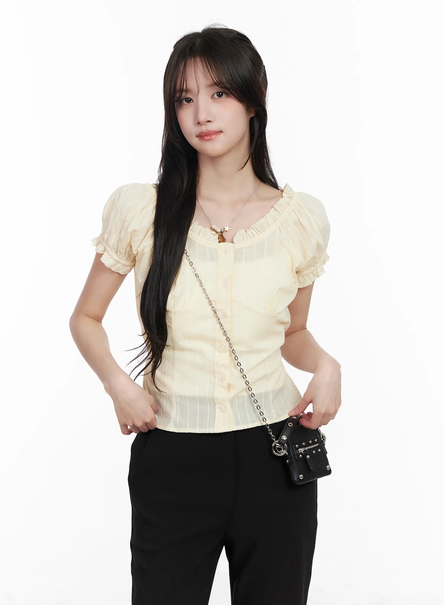 Puff Sleeve Buttoned Blouse with Back Tie CM531