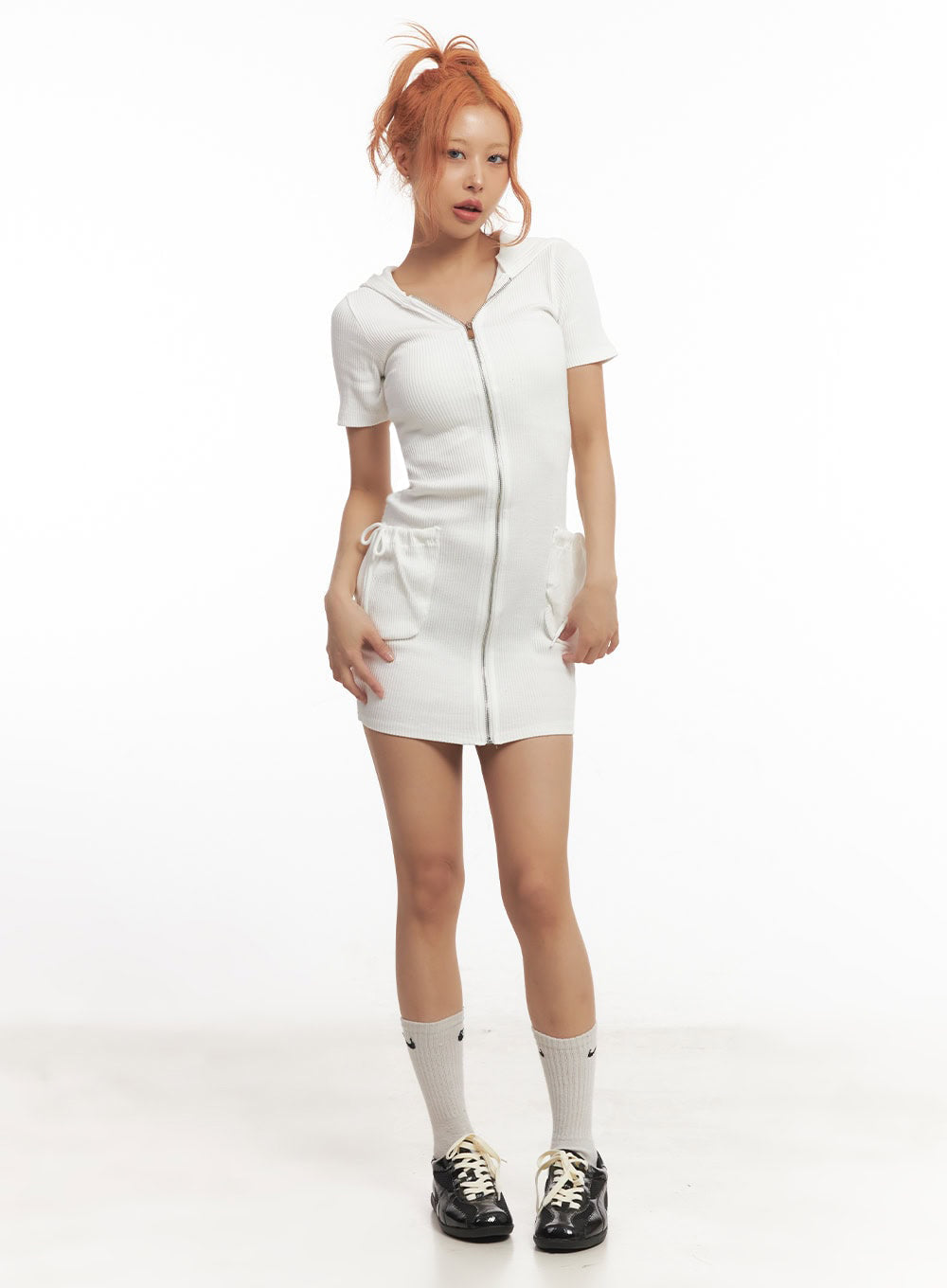 Ribbed Zip-Up Hooded Mini Dress IA517