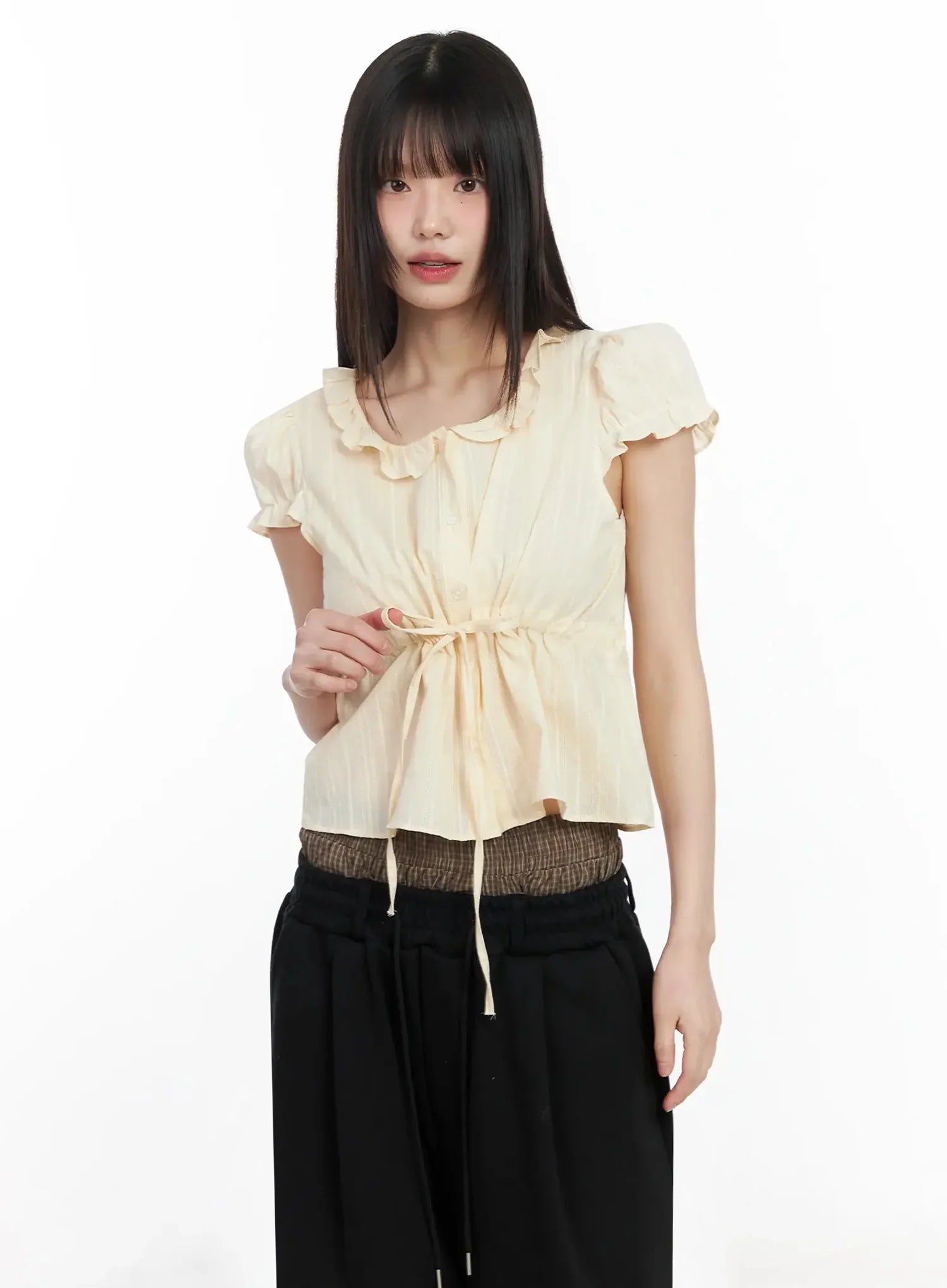 Ribbon Short Sleeve Blouse IM530