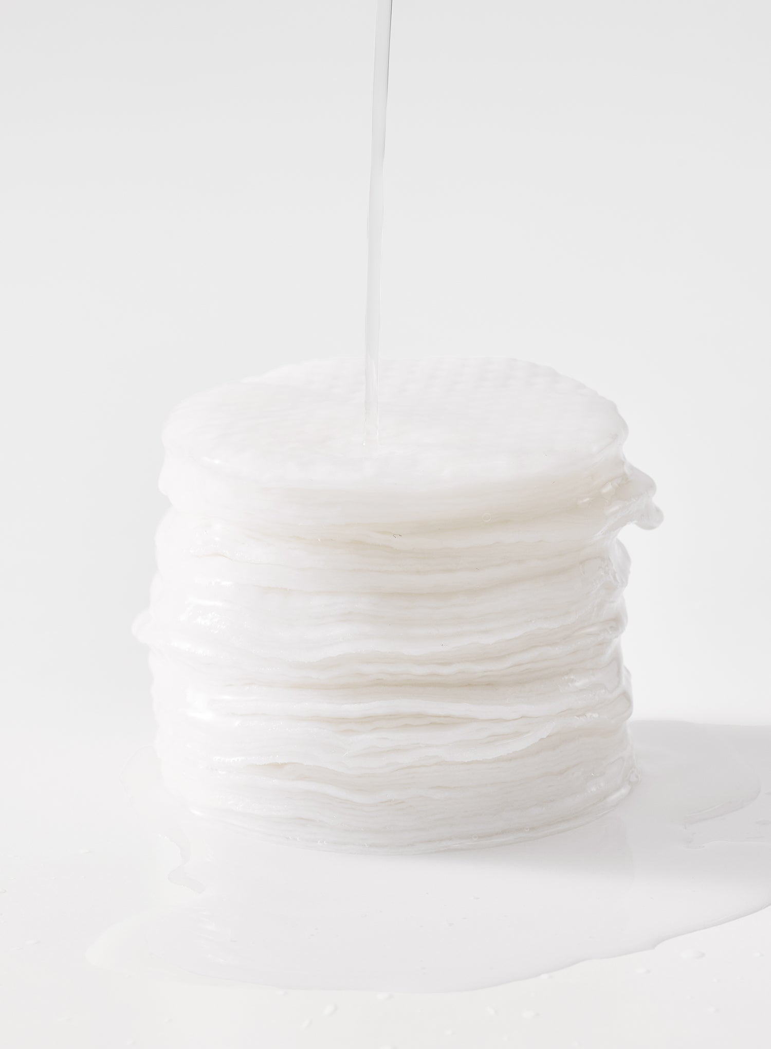 1. After cleansing, gently wipe the entire face along the skin texture with the embossed side, avoiding the eye area.