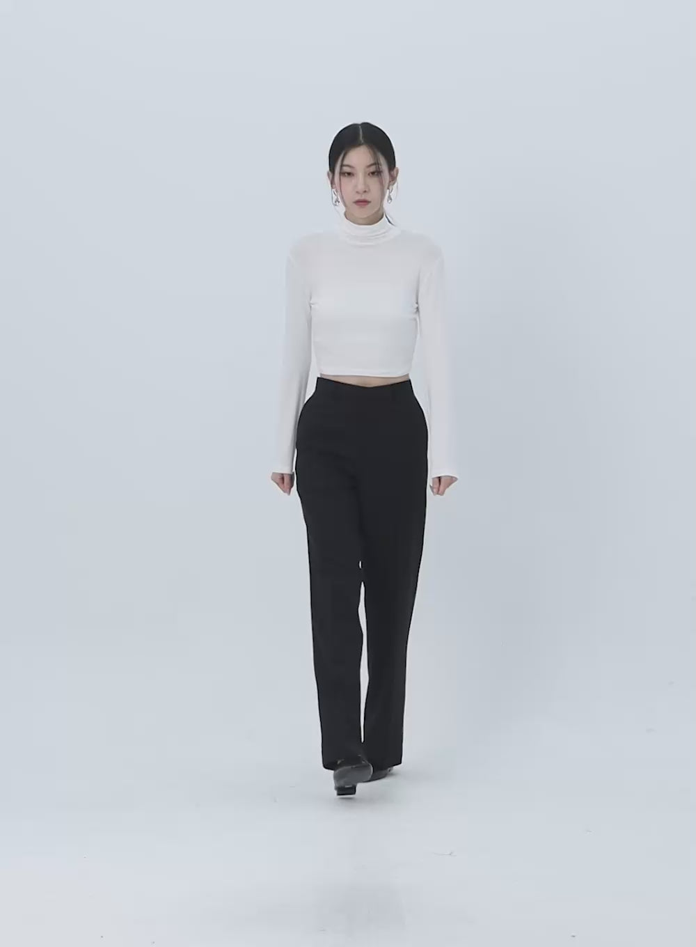 Solid Long Sleeve Turtleneck Crop IO320