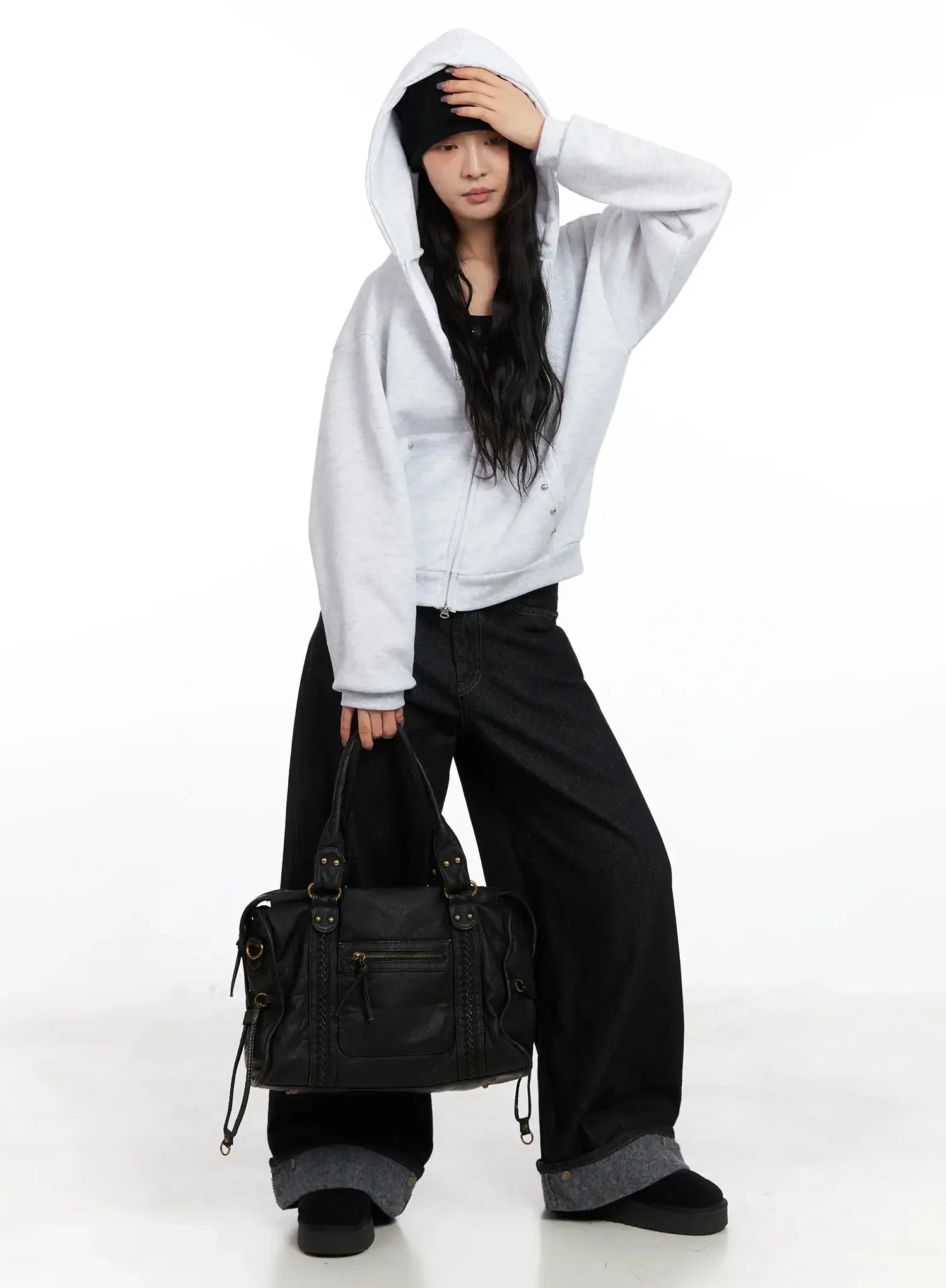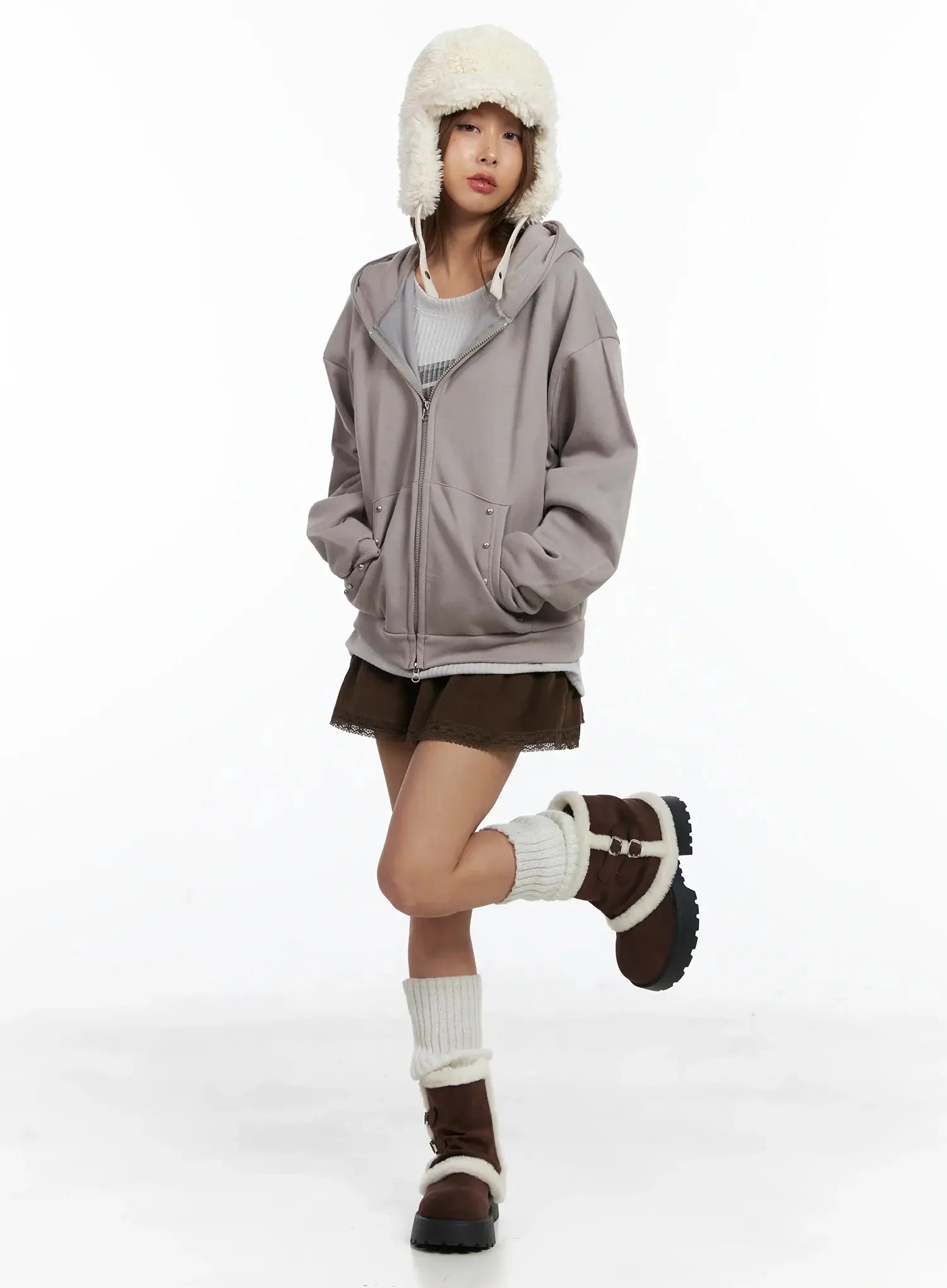 Studded Fleece Zip Hoodie IN528