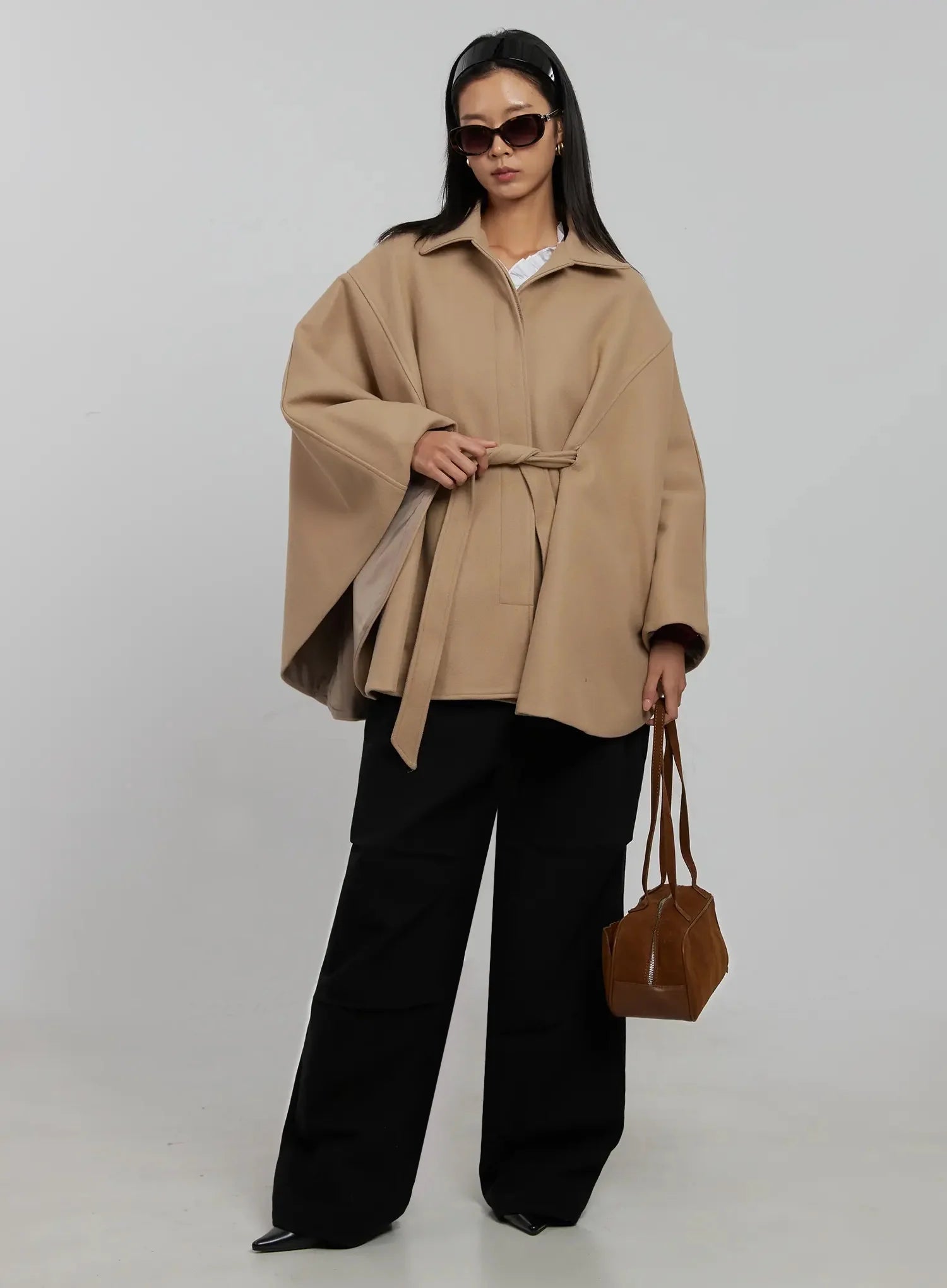 Tie Waist Cape Coat IJ509