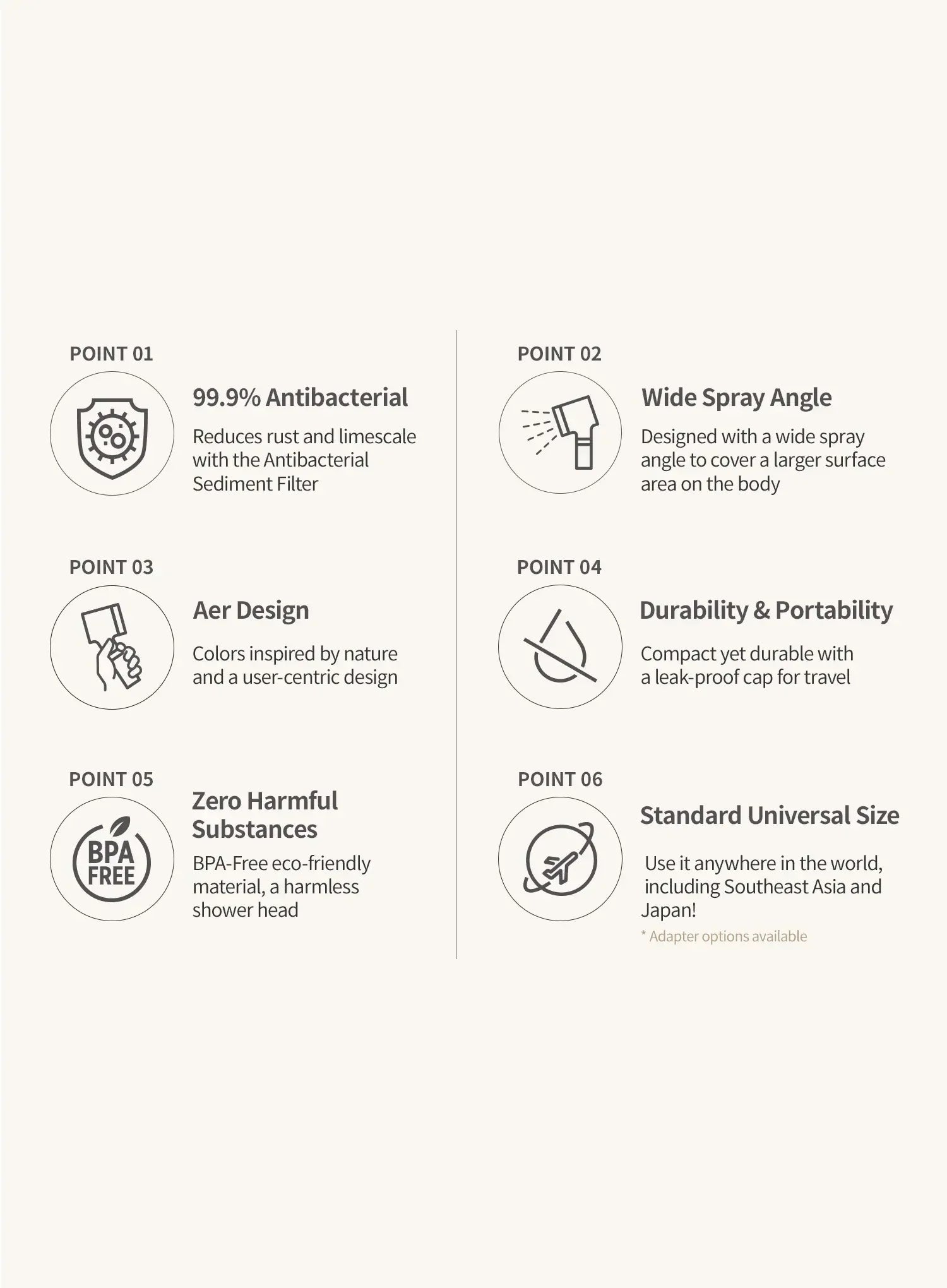Attach the adapter that matches your hose specification. Once the adapter is secured, connect the compact shower head to the hose and use as needed.
