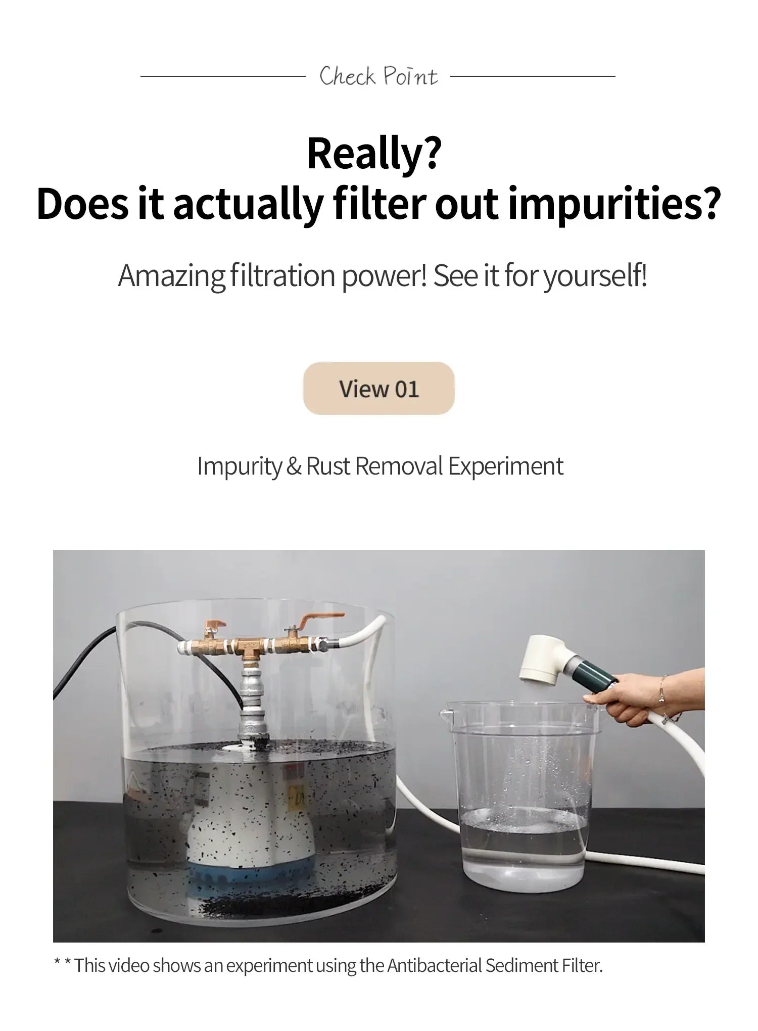 - 99.9% antibacterial: Antibacterial sediment filter helps reduce rust-colored water and limescale buildup.