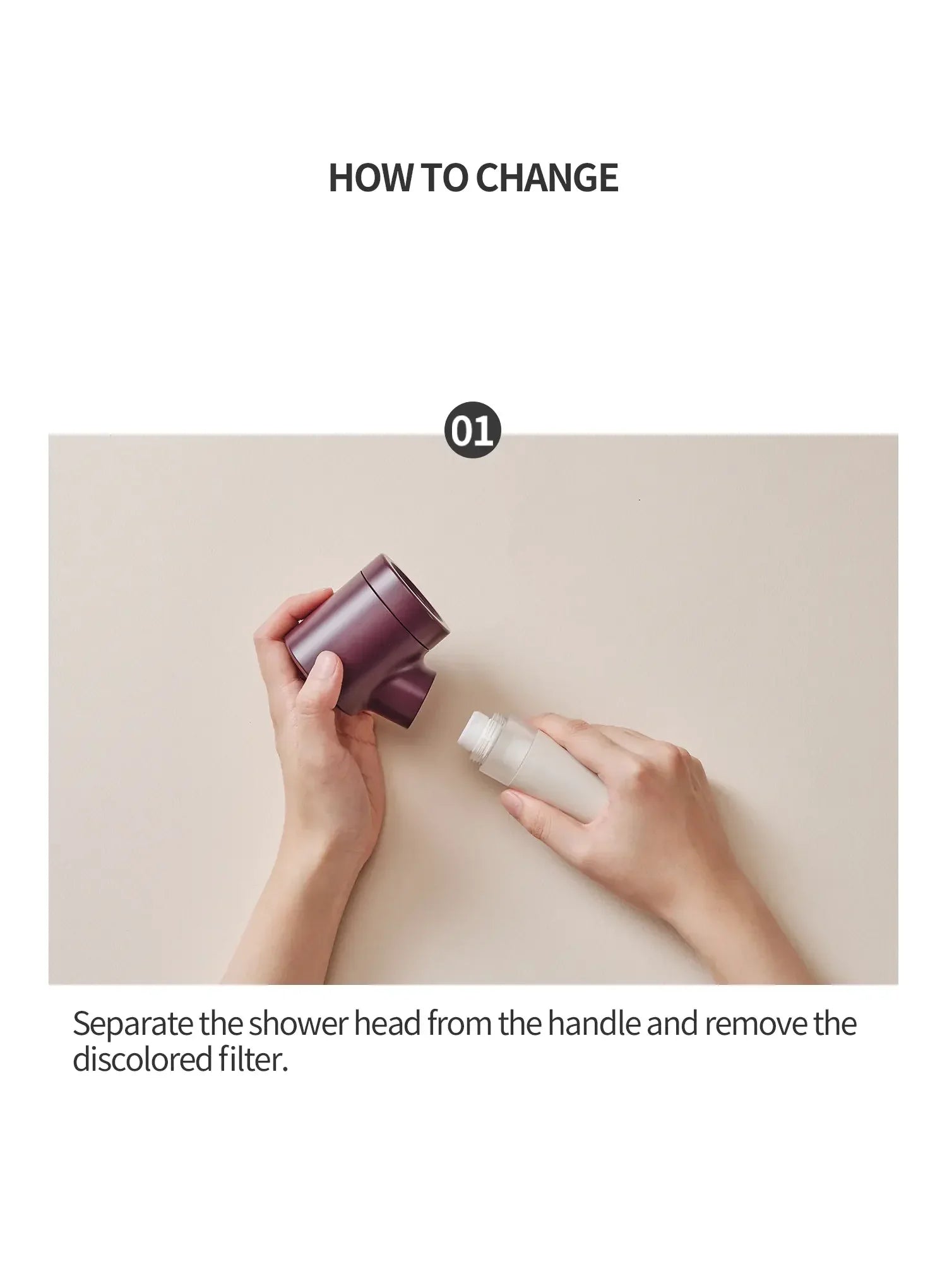 Separate the shower head from the handle and remove the discolored filter.