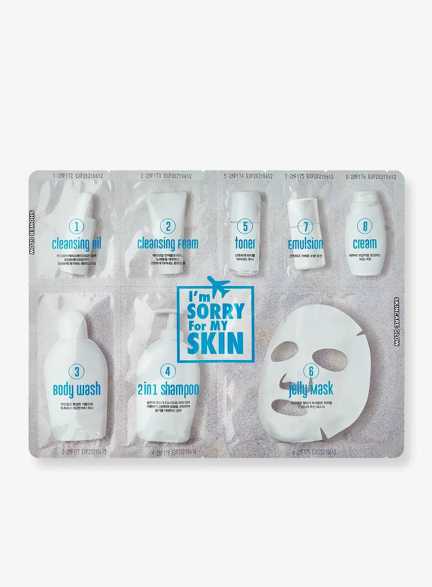 Contains 4 steps of cleansing and 4 steps of skincare in a travel set.