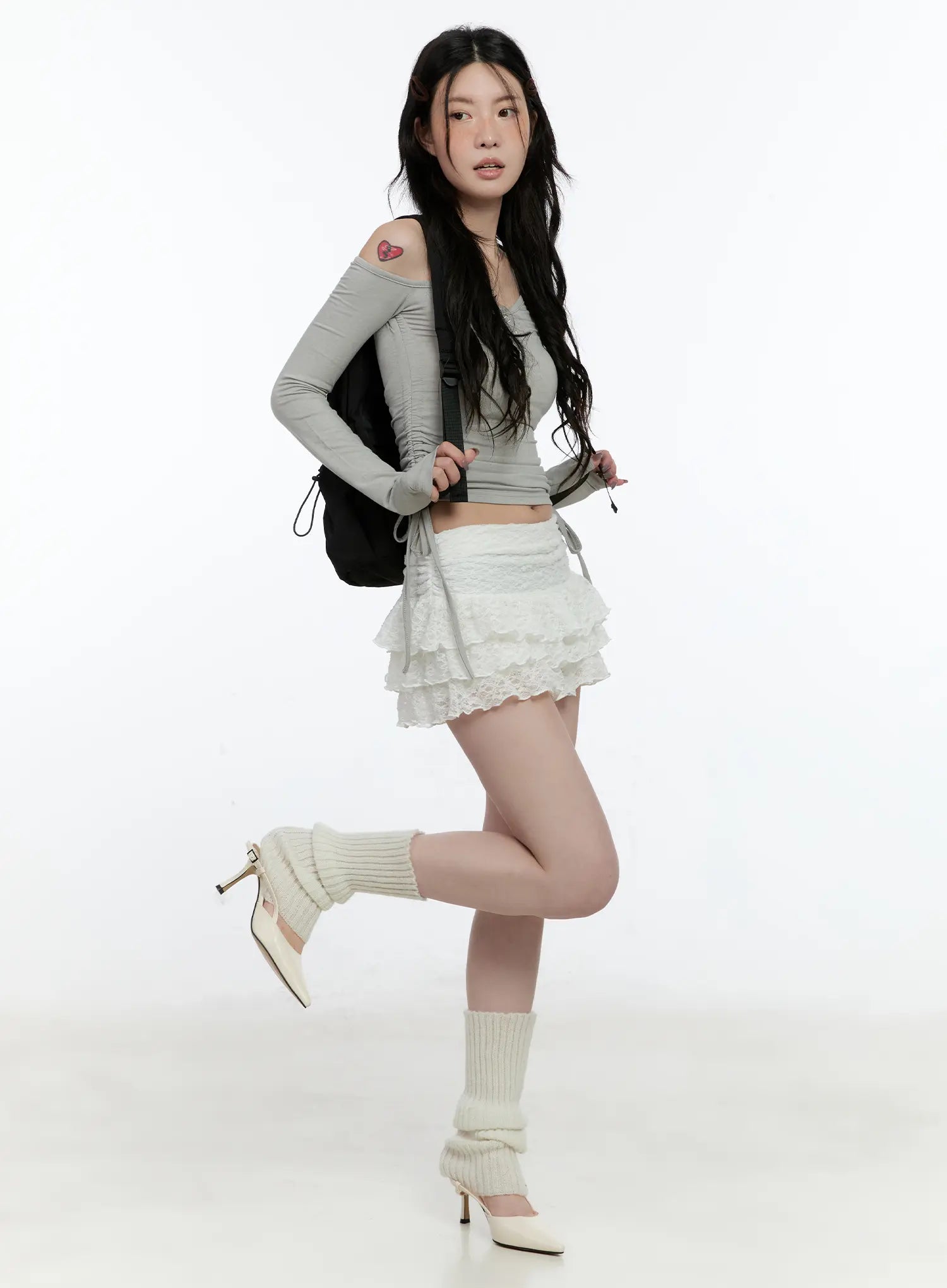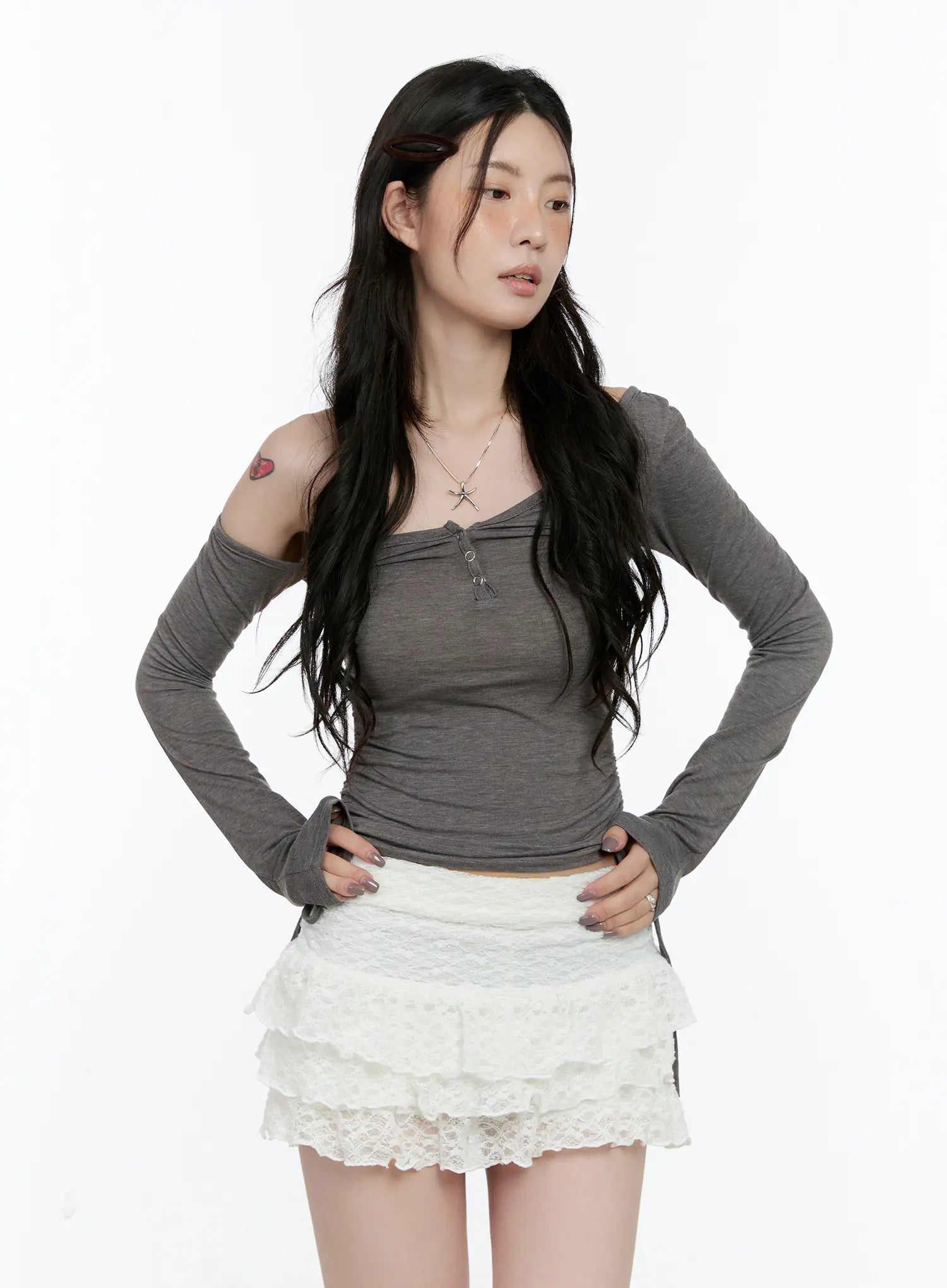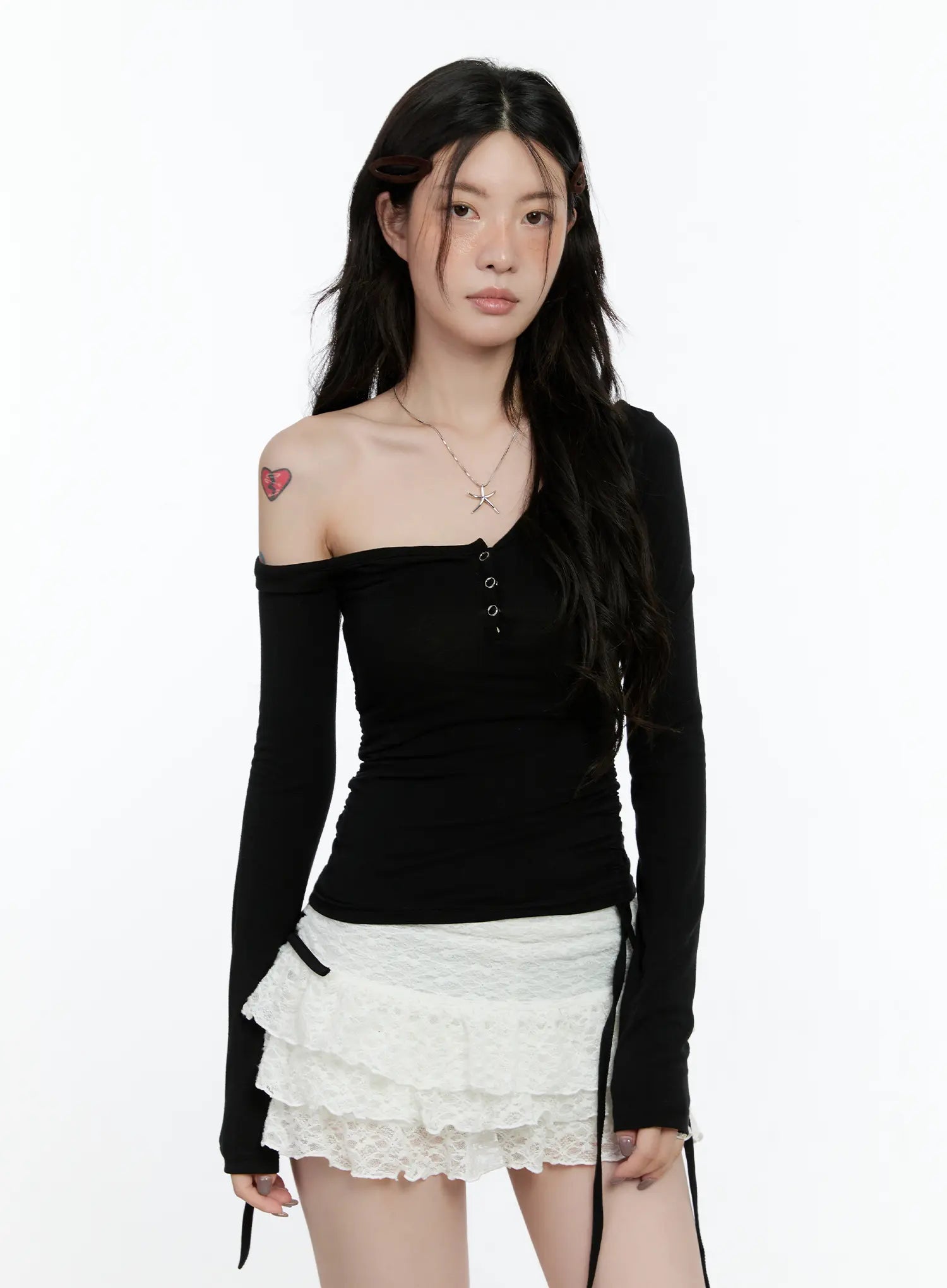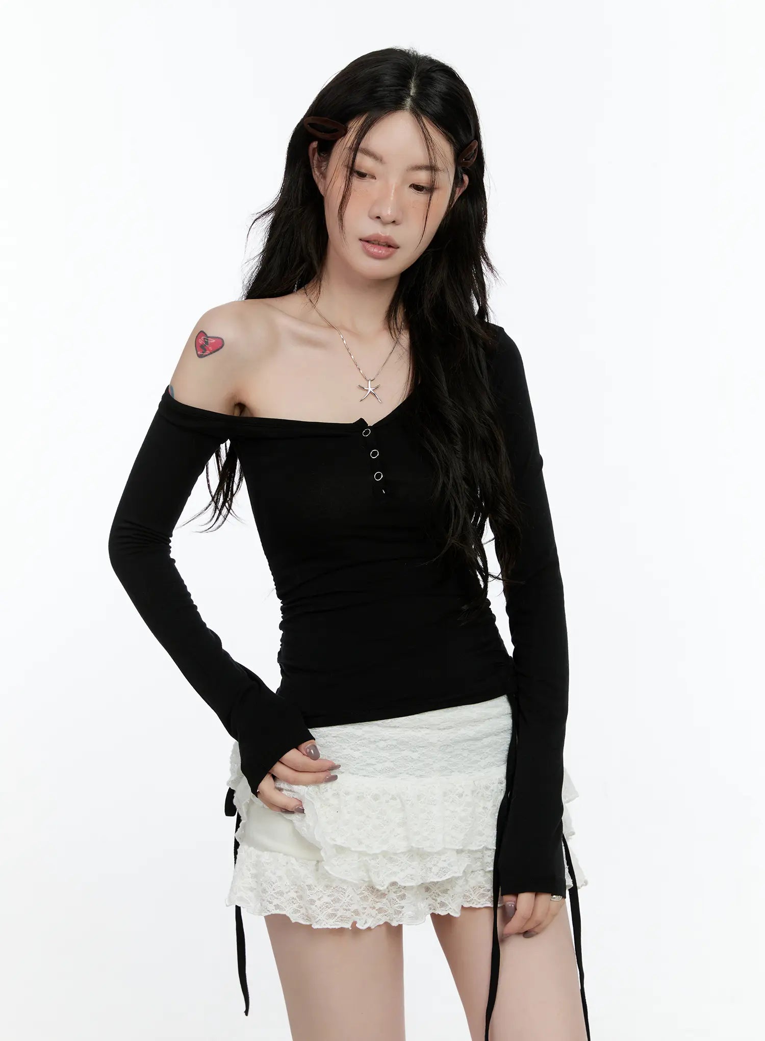 Asymmetric Ballerina Buttoned Off-Shoulder Top CN517