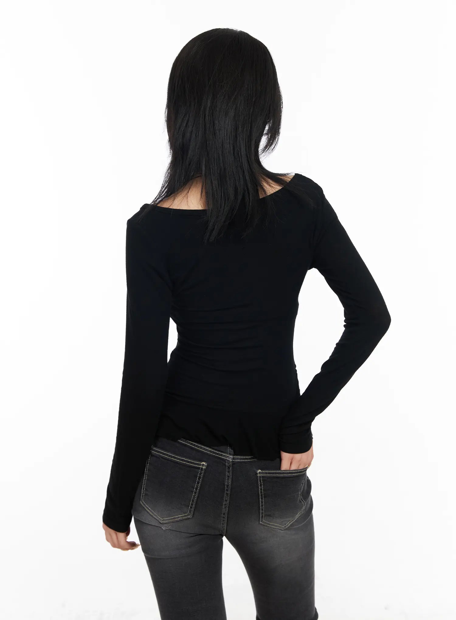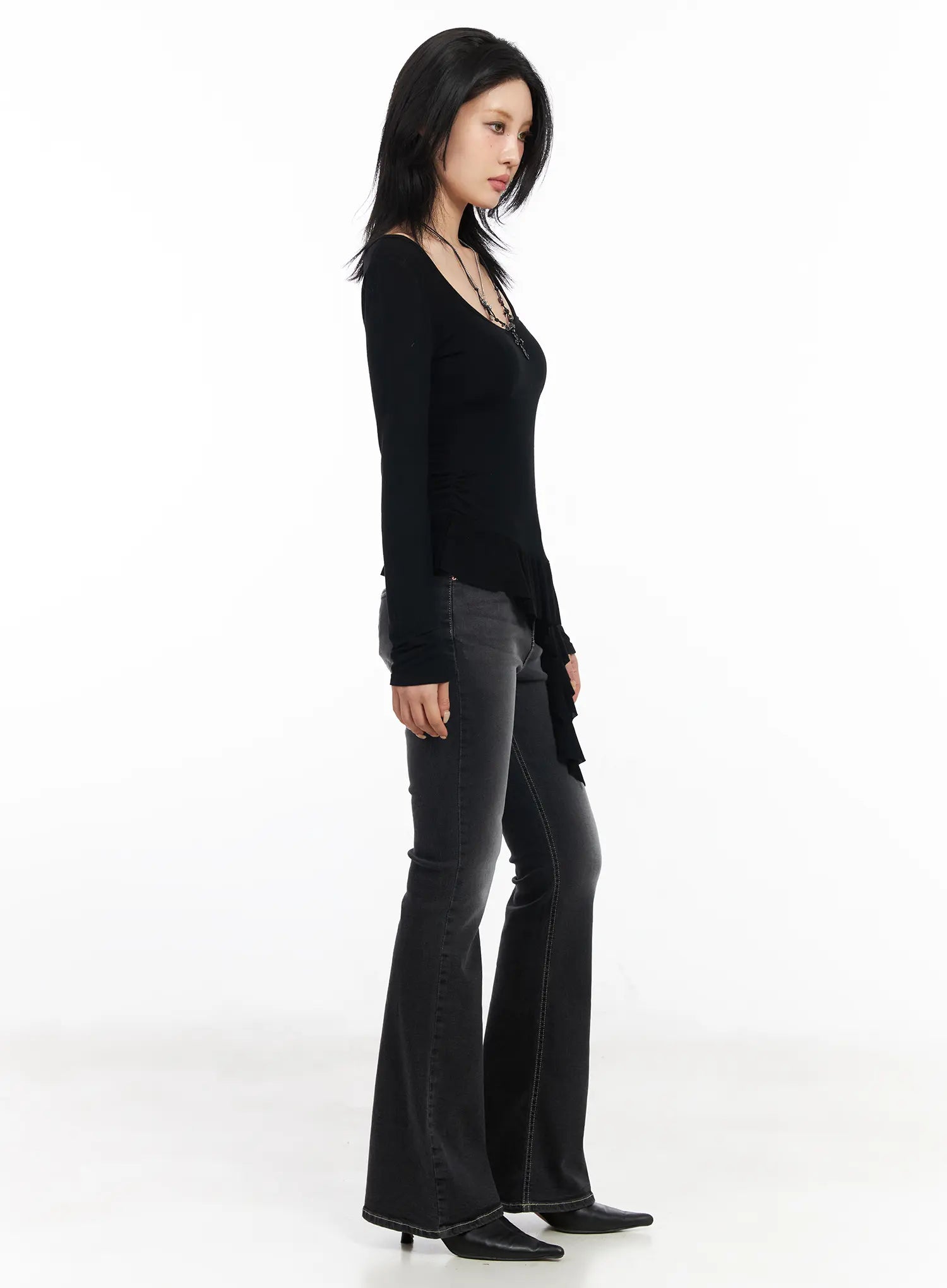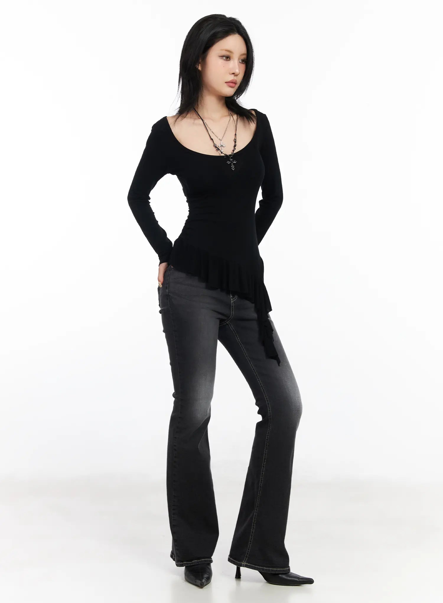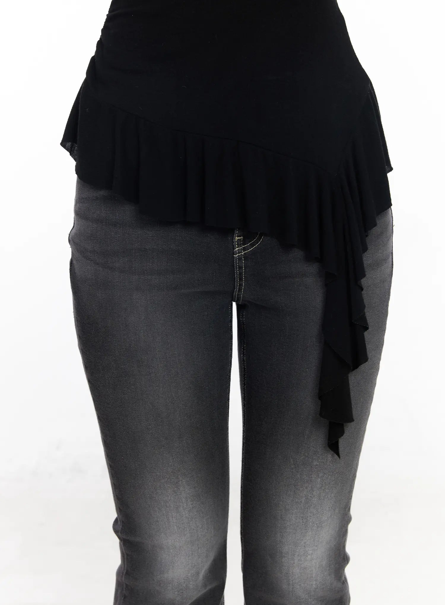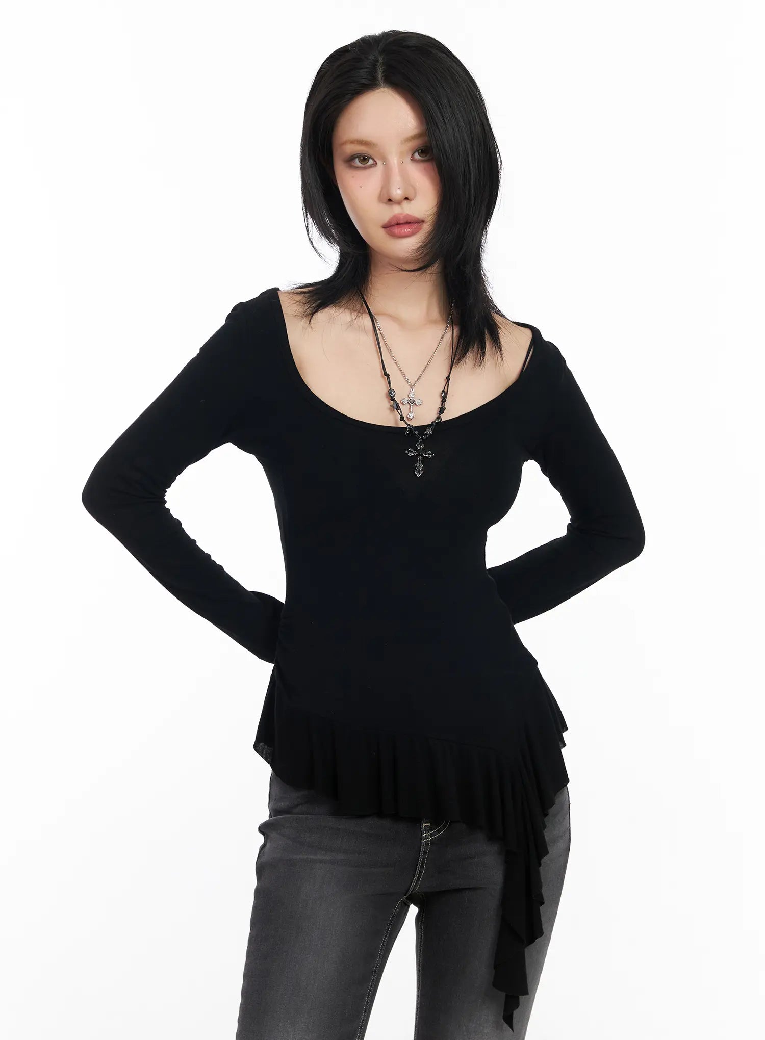 Asymmetric Ruffle Edge U-Neck Top CF527
