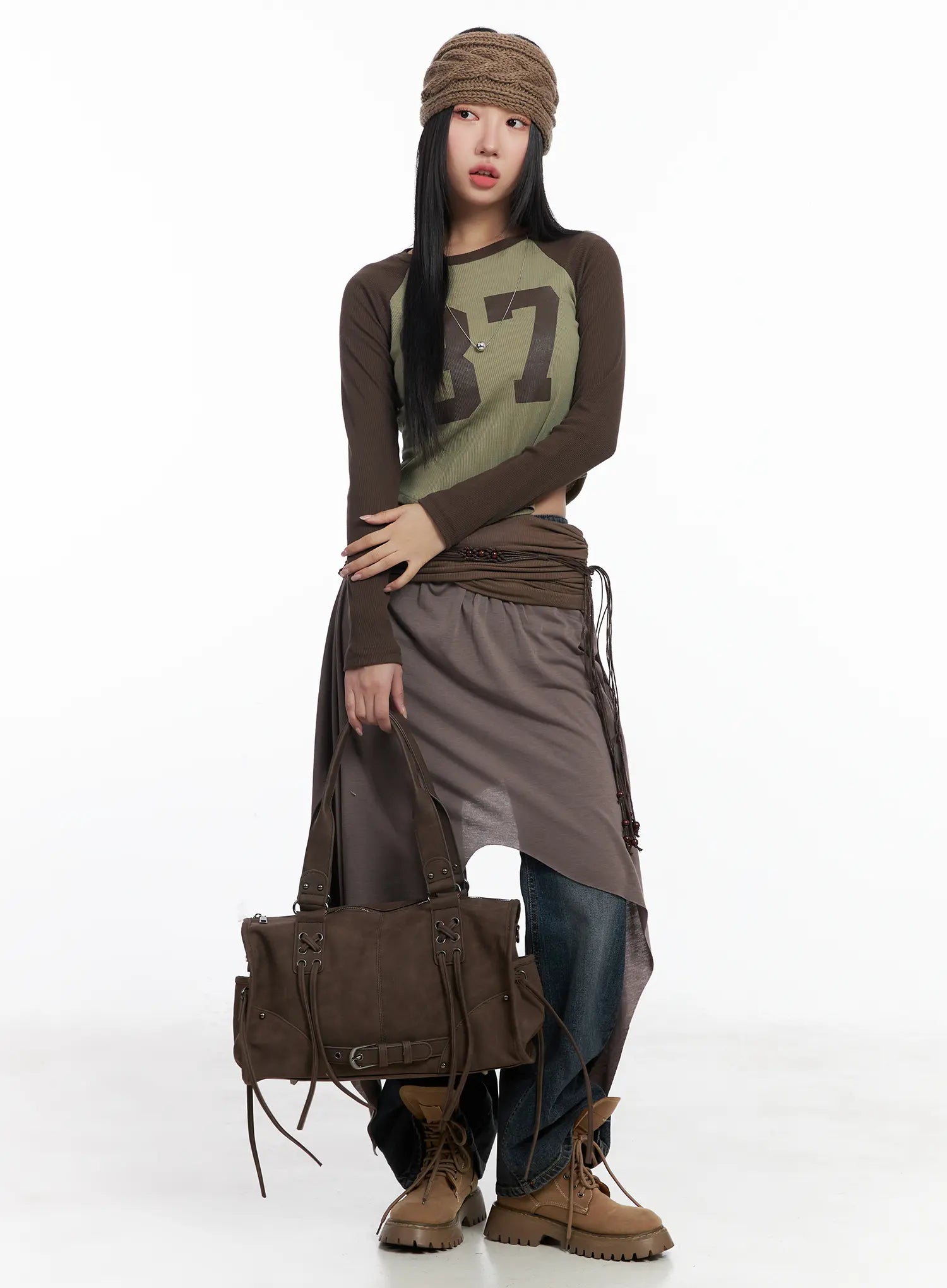 Model is wearing size S/M and the color Dark brown.