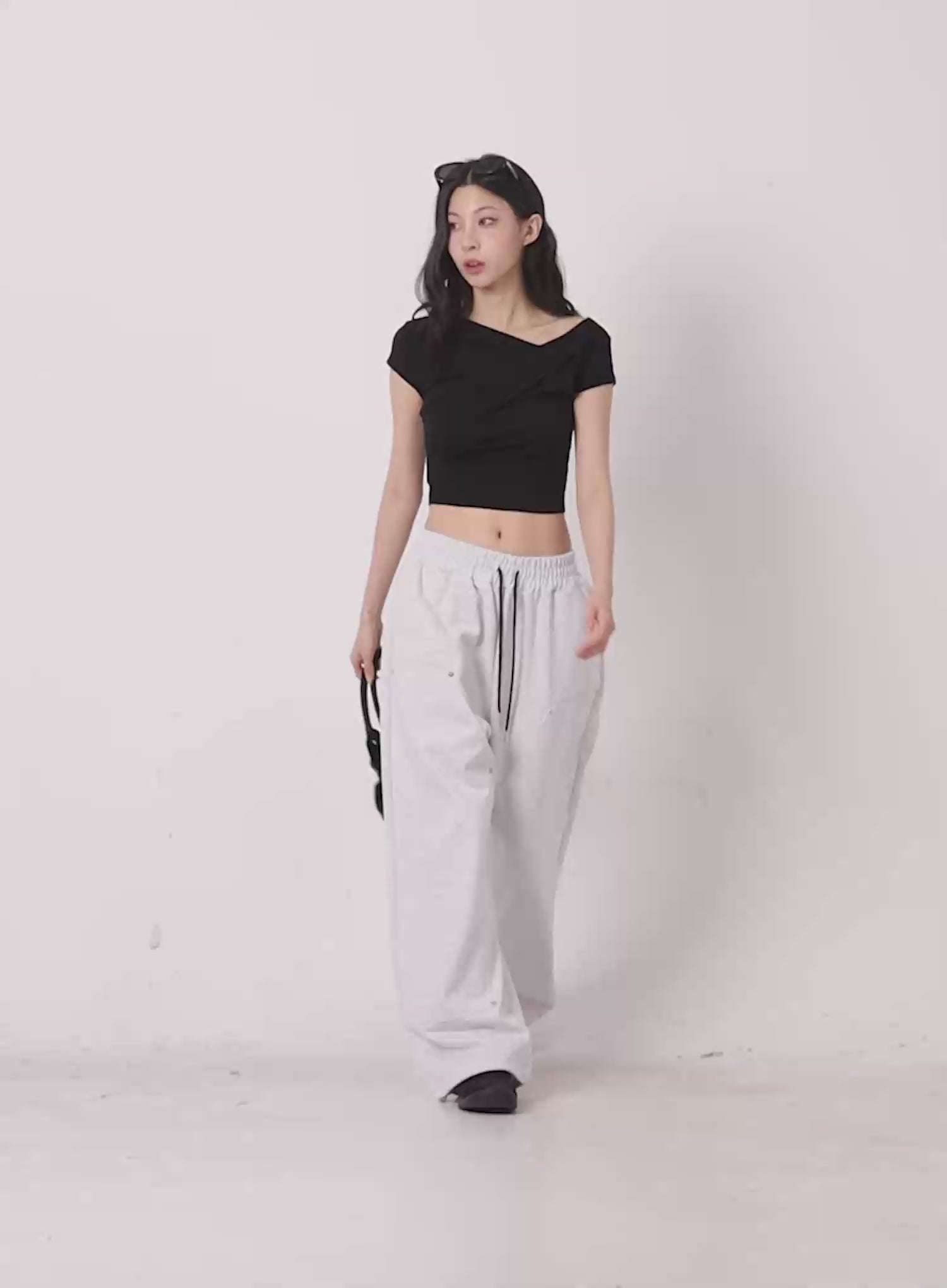 Asymmetric Shirred Off-Shoulder Crop Tee IG508