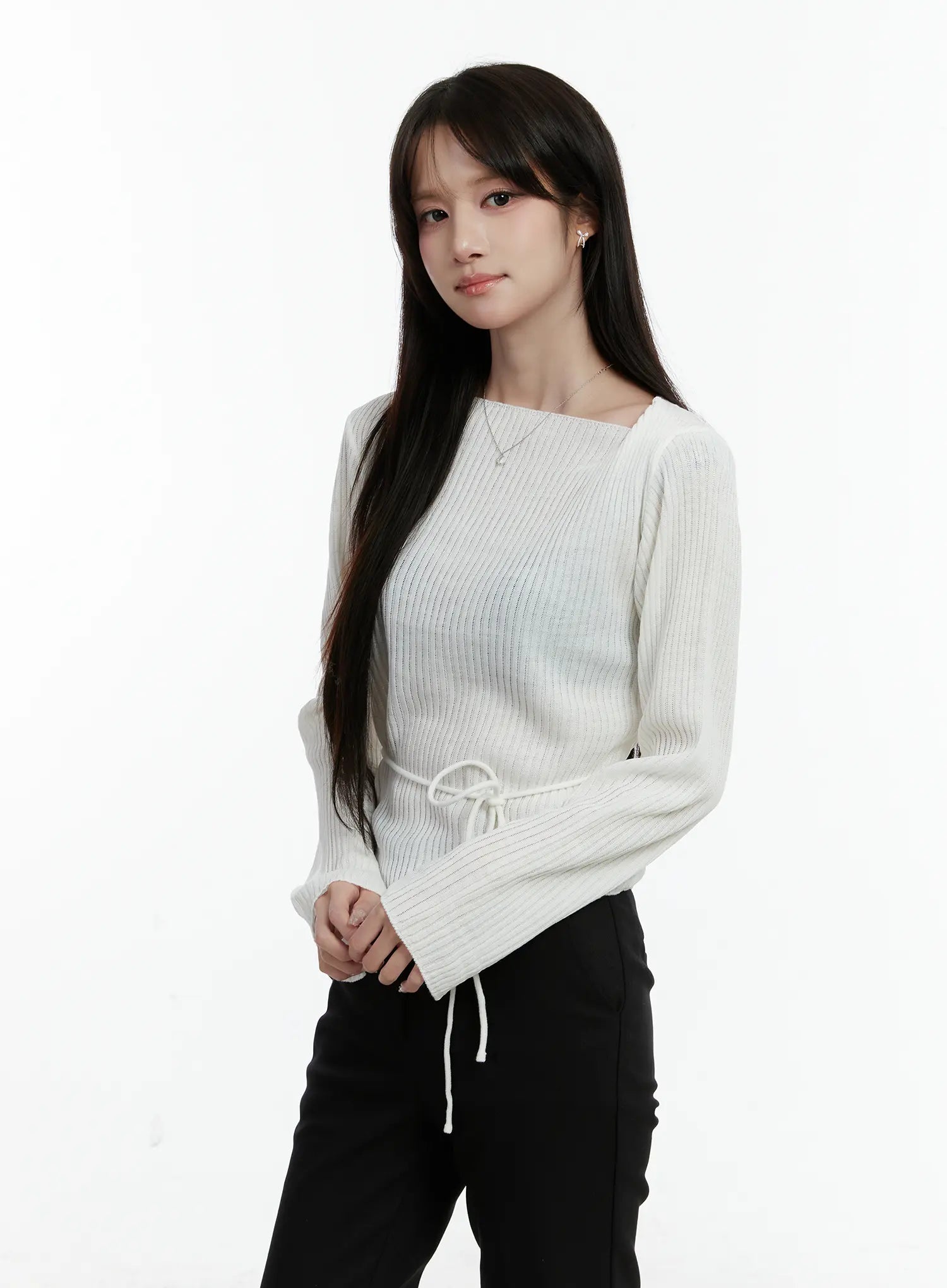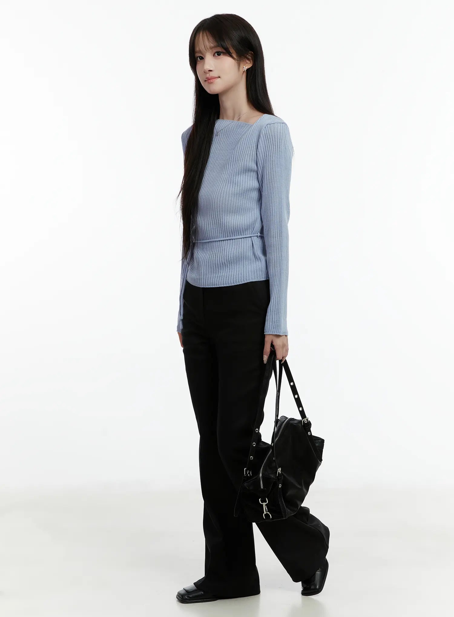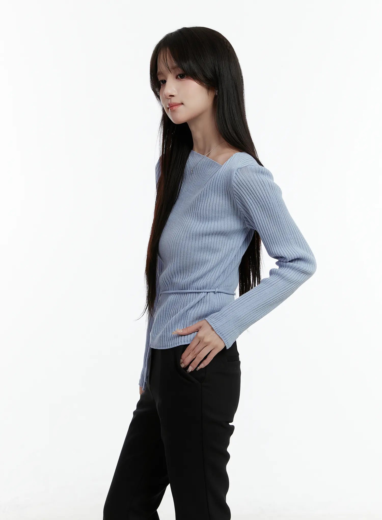 Asymmetrical Boat Neck Knit Top CD523