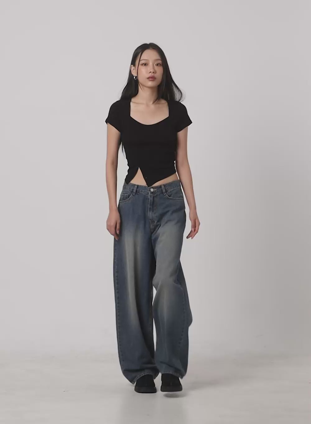 Asymmetrical Buttoned Square Neck Crop Top IG405