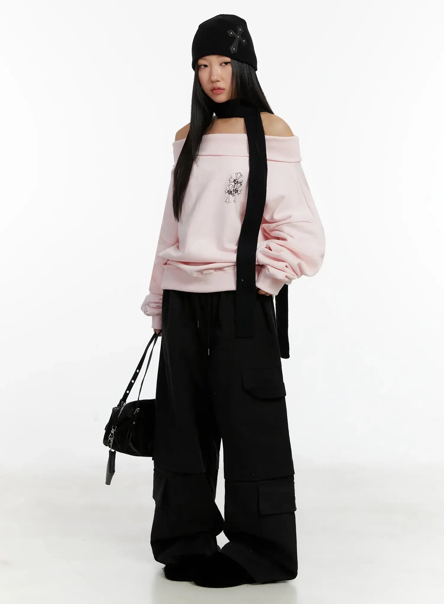 Model is wearing size M/L and the color Black.